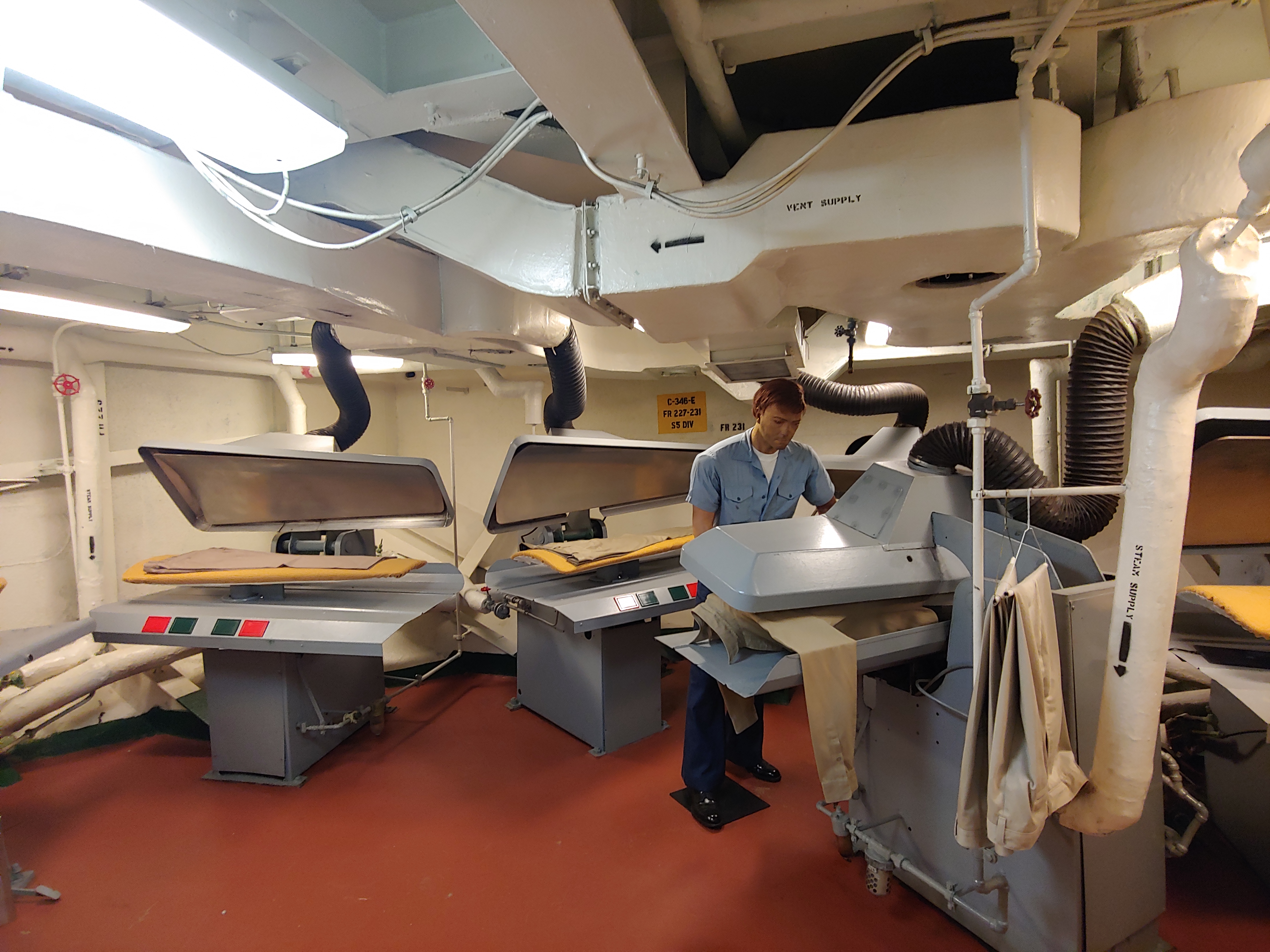 제복을 다리는 세탁실.