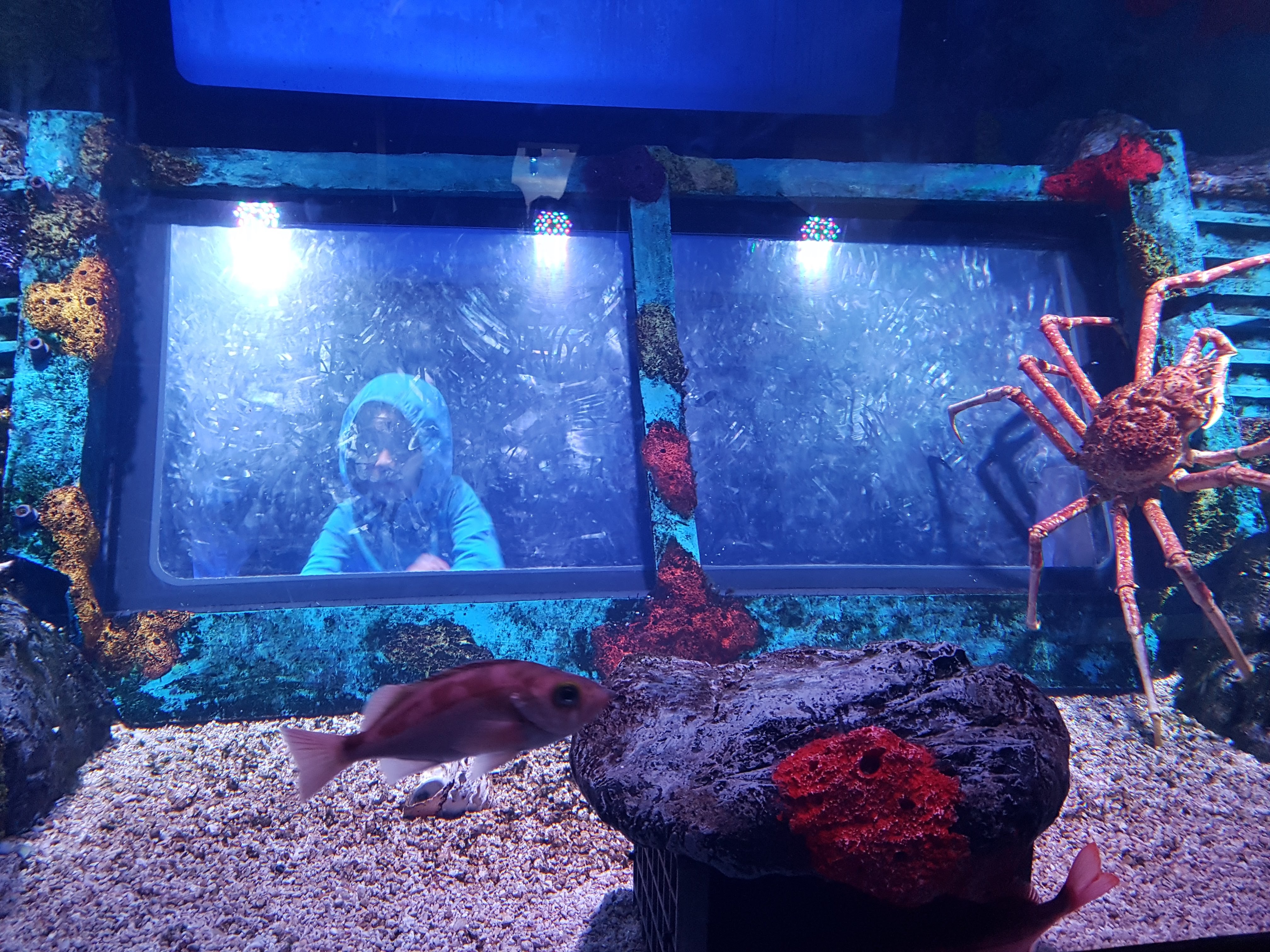 강화유리창을 통해 바닷속 생물 관찰하기