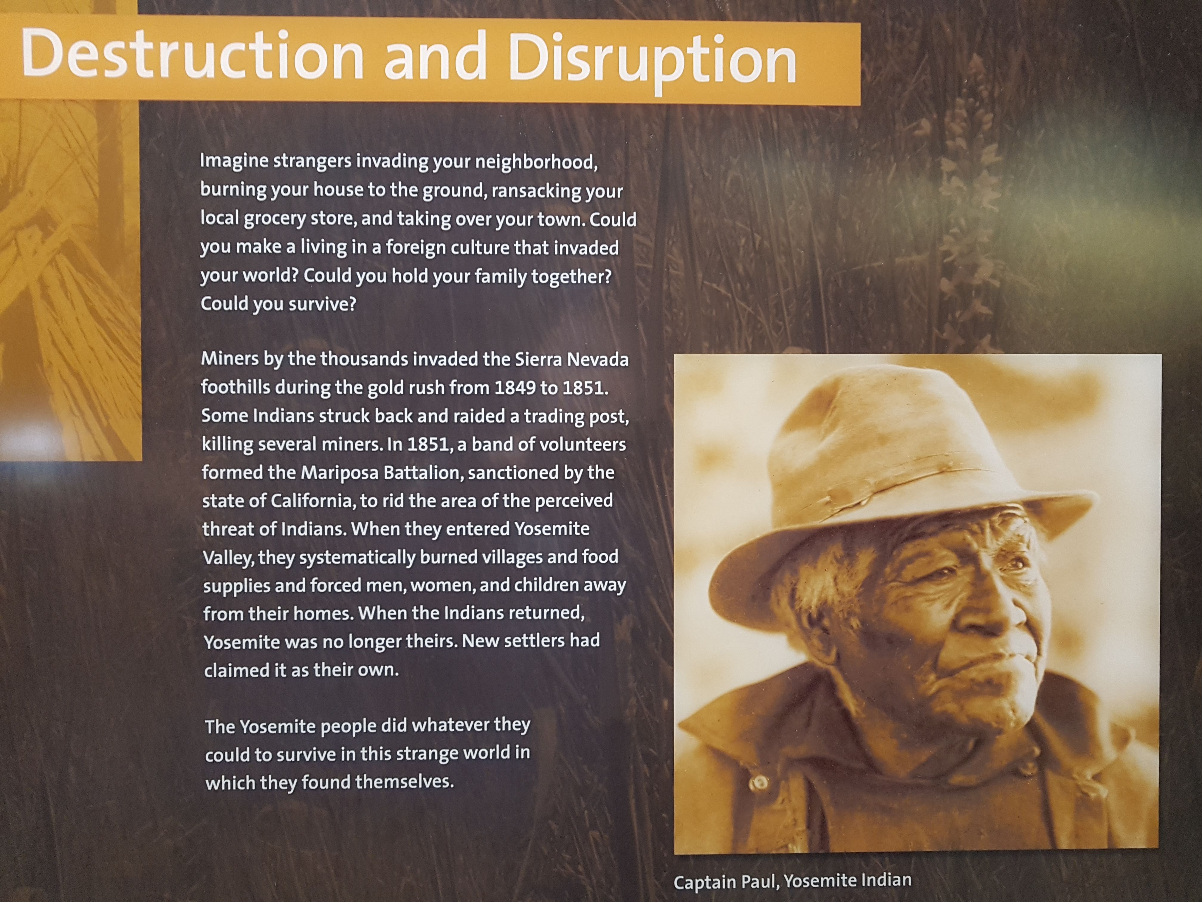 요세미티의 슬픈 역사. 서양인이 요세미티를 발견하고 이곳 선주민의 문명이 완전히 파괴되는데 불과 170년밖에 안 걸렸다.