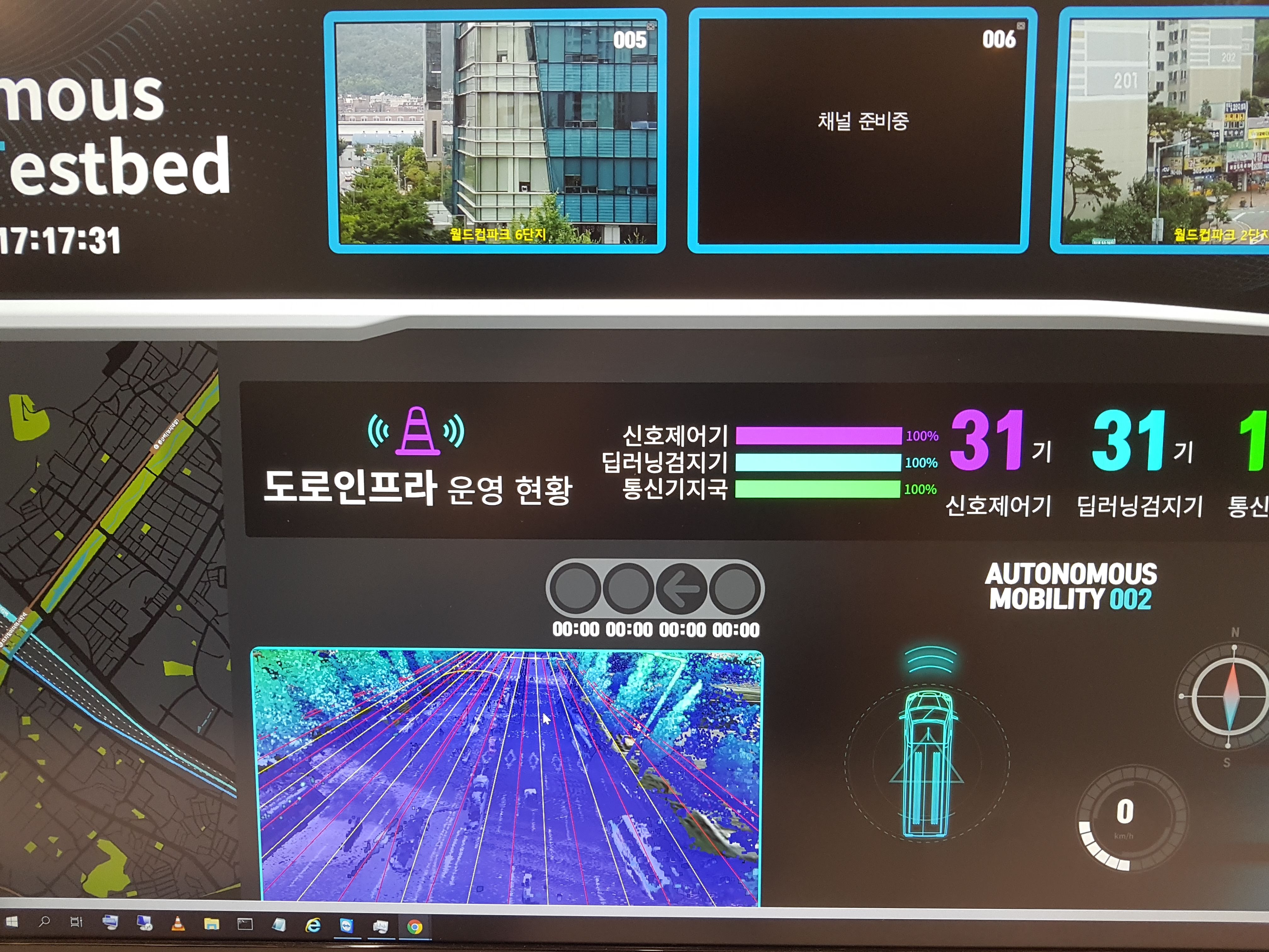 2019년 6월 22일 서울시 마포구 상암동에서는 박원순 서울시장님, 김현미 국토교통부 장관님 등이 참석한 가운데 '5G 자율주행차 페스티벌'이 열렸습니다. 상암동 에스플렉스에는 이 자율주행차 통합관제센터가 설치되어 있는데요. 링크한 기사의 중간 부분에 보이는 사진처럼 구성되어 있습니다. 잘 보시면 mago3D가 적용된 화면을 보실 수 있습니다.