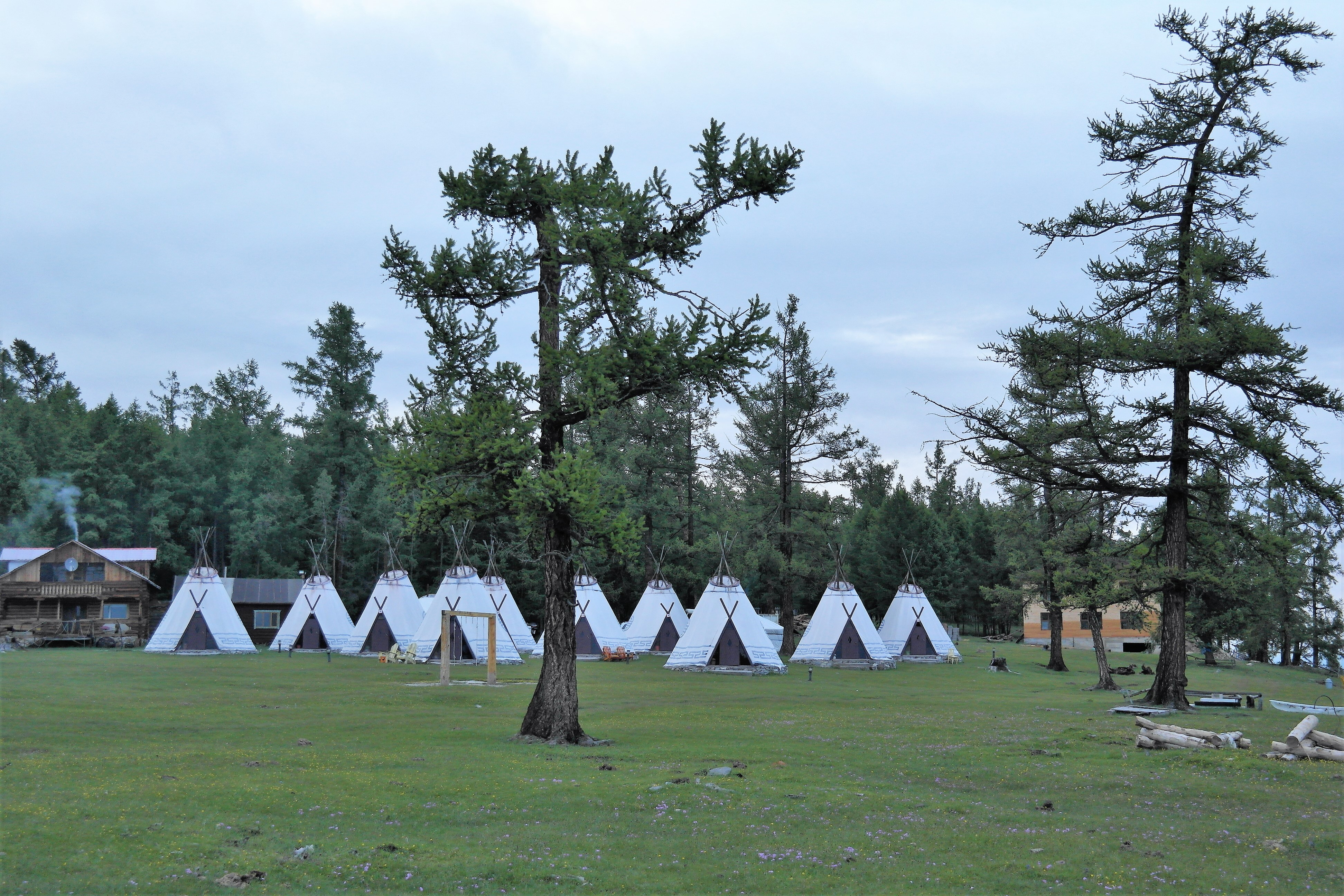 드디어 숙소인 Toilogt 캠프에 도착. 하트갈에서 제법 안쪽으로 들어온 곳에 자리잡고 있다. 하지만 뒤로는 울창한 타이가 숲이 있고 캠프 바로 앞에는 흡스굴 호수가 있어서 입지가 매우 좋았다. 흡스굴 호수를 마치 프라이빗 비치처럼 이용할 수 있는 셈. 아래처럼 통나무집 형태, 전통 게르 형태, 그리고 차탕족 게르 스타일의 숙소가 준비되어 있다.