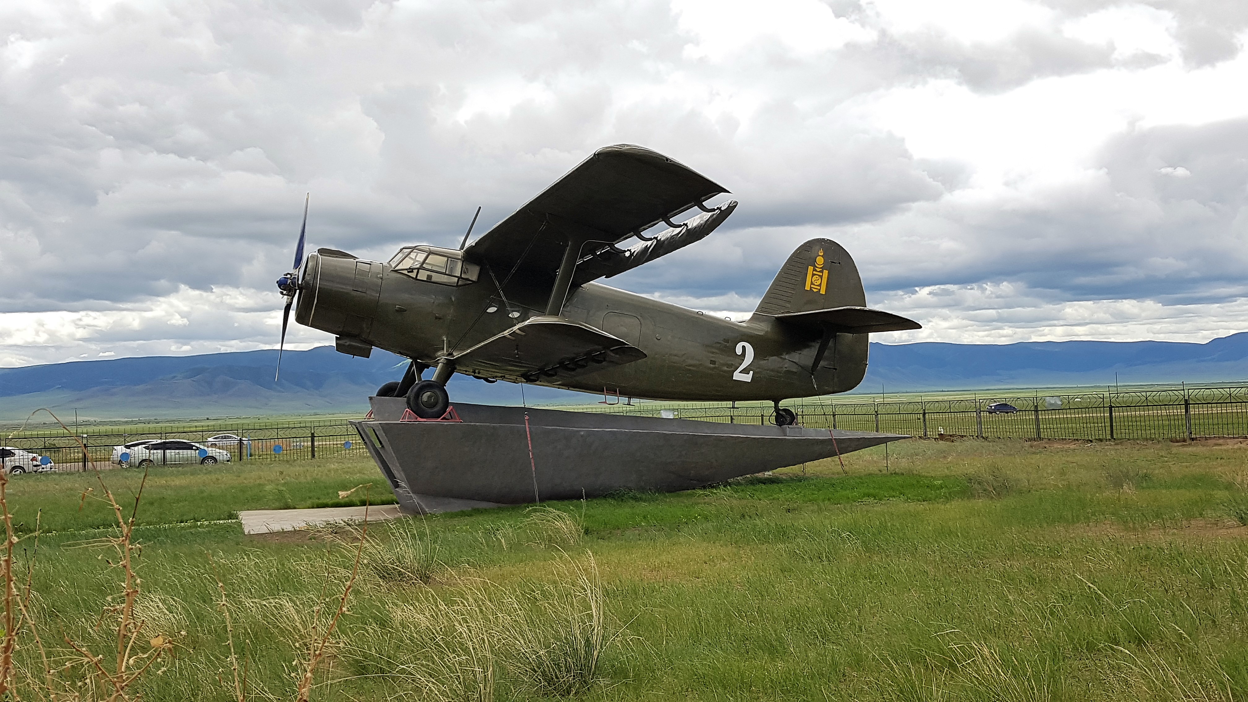 무릉공항 청사 앞에 전시되어 있는 옛 몽골 복엽기. 예전에 여기가 군사공항이었던 모양.