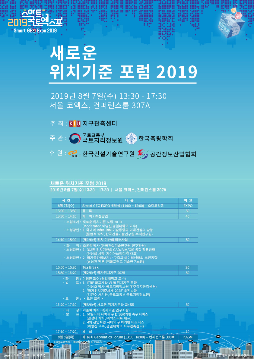8월 7일 코엑스에서 열리는 새로운 위치기준 포럼에서 '3차원 위치 기반의 CAD/BIM/GIS 융합 활용방향'이라는 주제로 발표합니다. 이 행사 등록은 아래 링크에서 하실 수 있습니다. 참고하시기 바랍니다.
