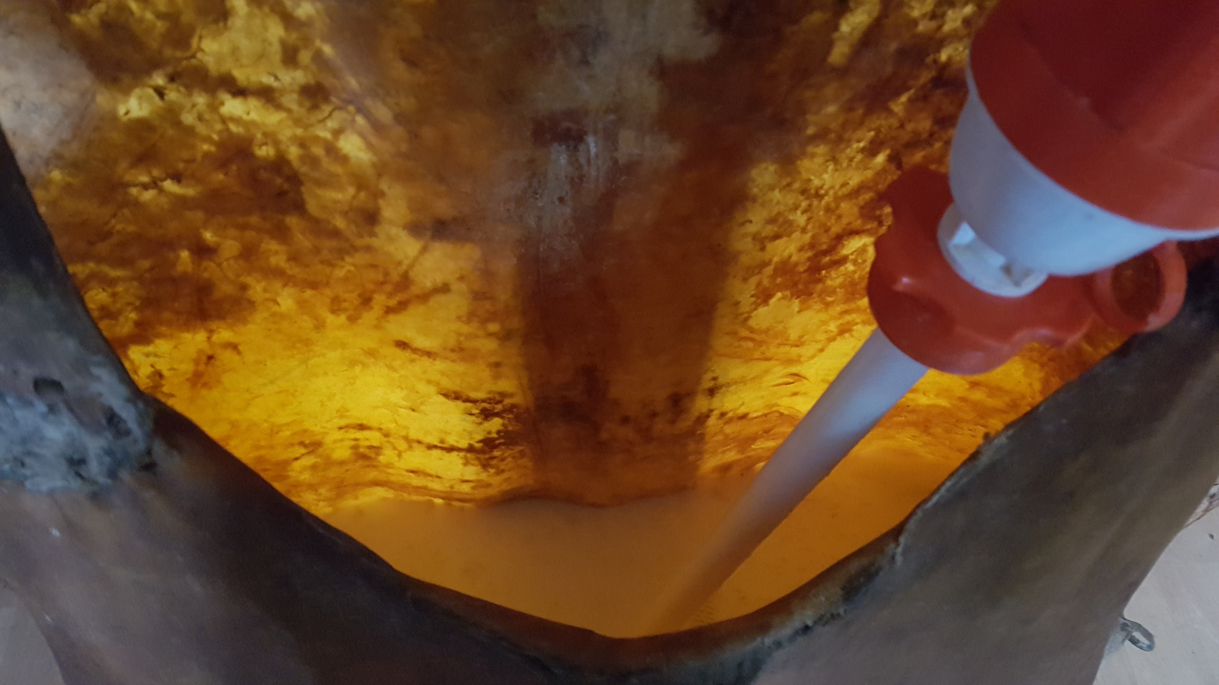 마유주가 말 가죽 안에서 발효되고 있는 모습. 이 마유주를 저 손 펌프로 그릇에다가 퍼서 판매한다.