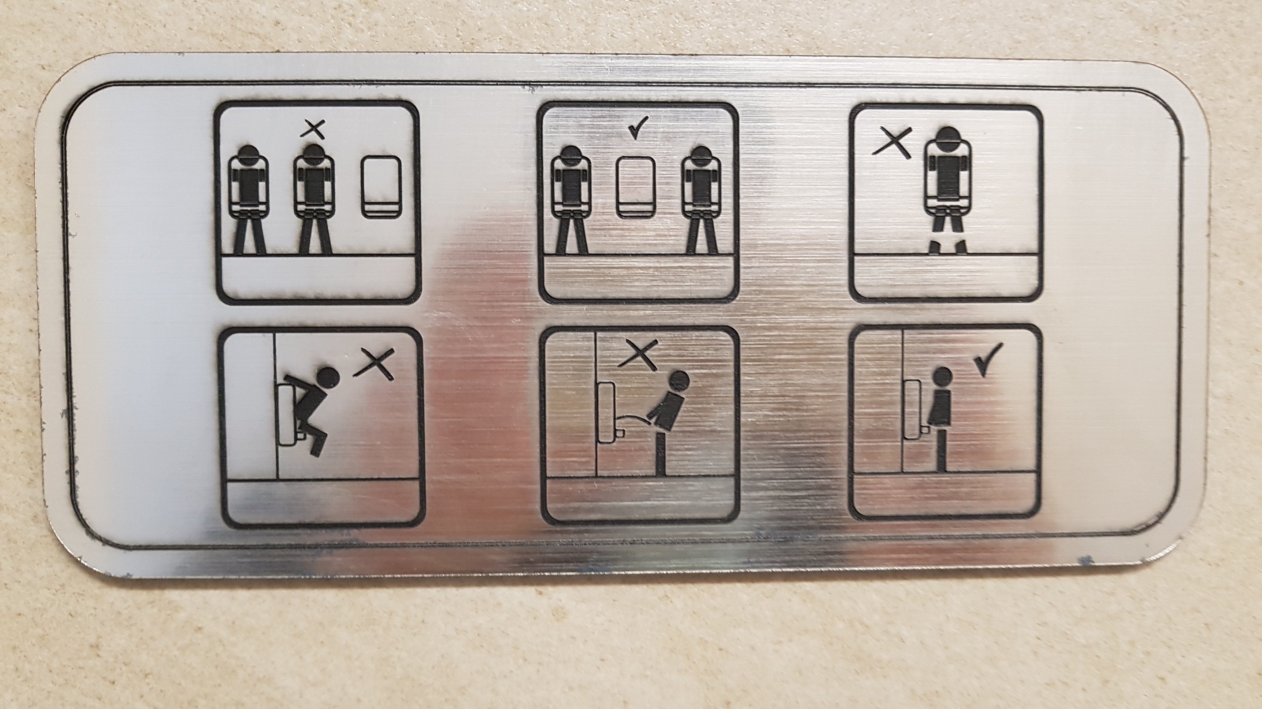 고속도로 휴게소 화장실 안의 안내 표시. 의미를 하나씩 파악해 보시길.