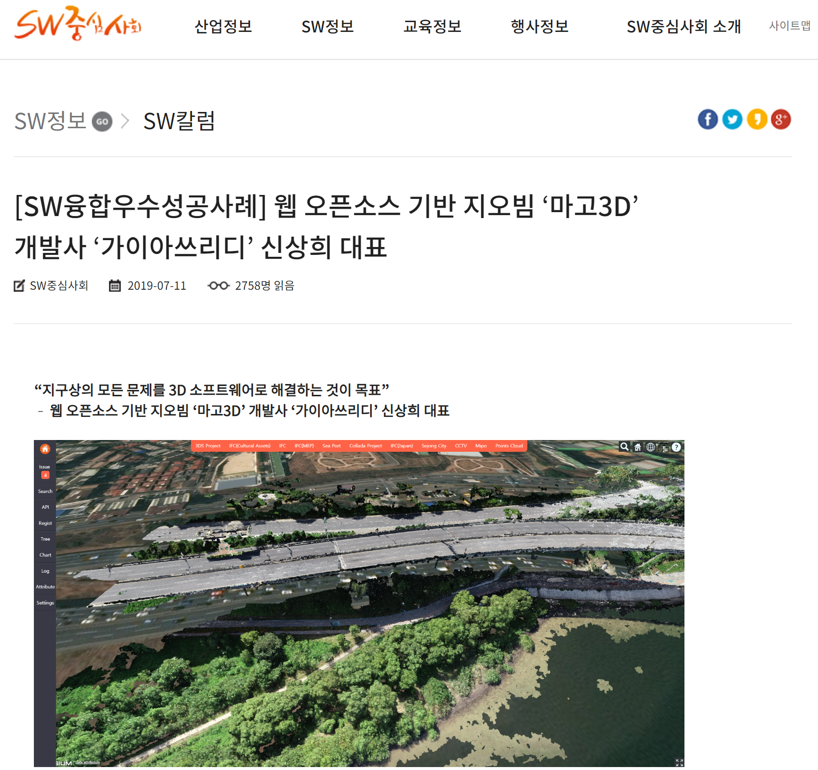 소프트웨어중심사회와 가졌던 mago3D에 대한 인터뷰한 내용이 게시되었습니다. 상세한 인터뷰 내용은 http://www.software.kr/um/um02/um0204/um0204View.do?boardId=11&postId=53683 에서 확인하실 수 있습니다.