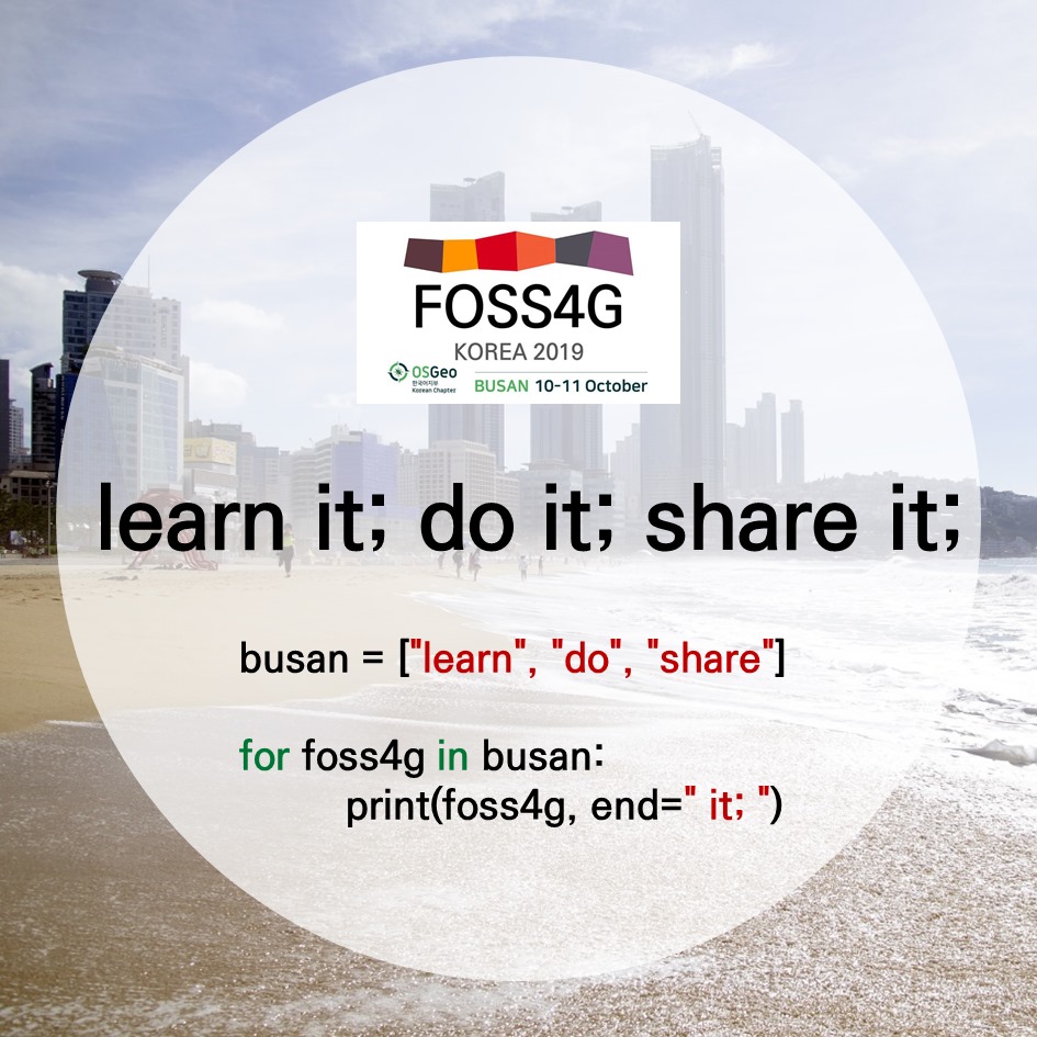 | FOSS4G Korea 2019 공식 프로그램 안내 (0) | 2019.10.02 |
