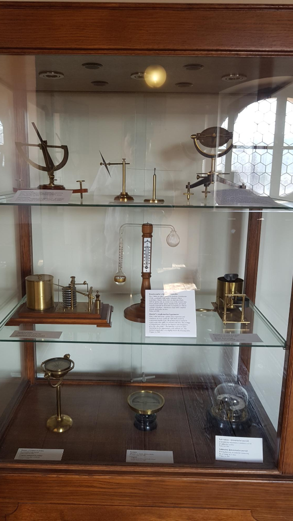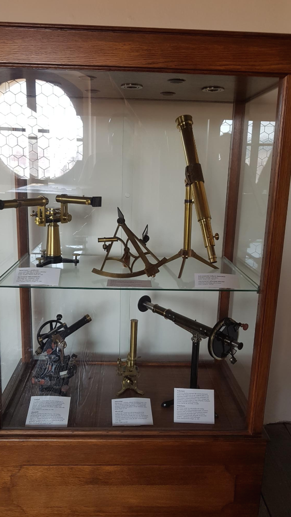 천문탑에 전시되어 있는 각종 관측 기구들.