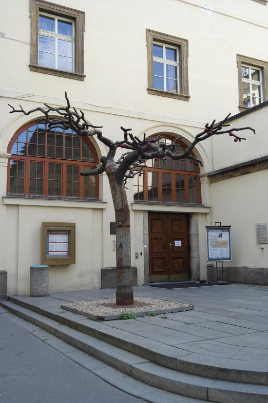 클레멘티눔 입구 쪽의 철로 만든 나무.