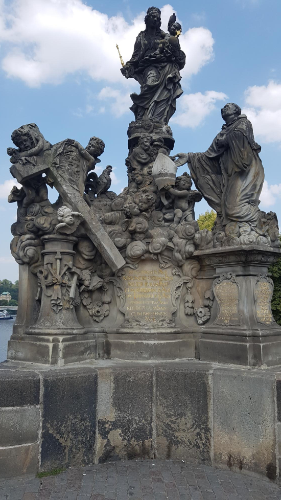 카를교의 석상 중 하나. 관광객이 워낙 많아 사람 없는 사진 한 장 찍기가 정말 힘들다.