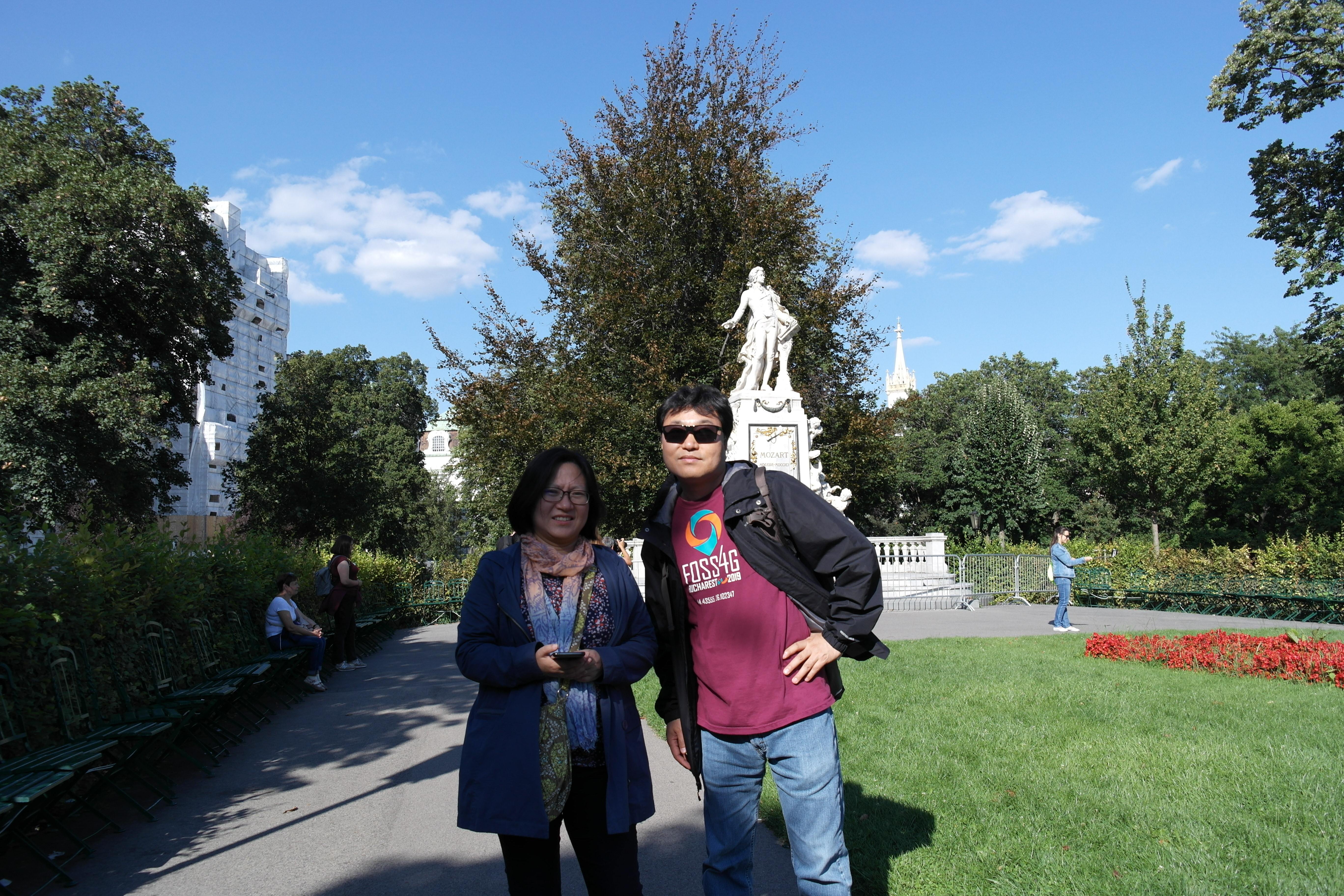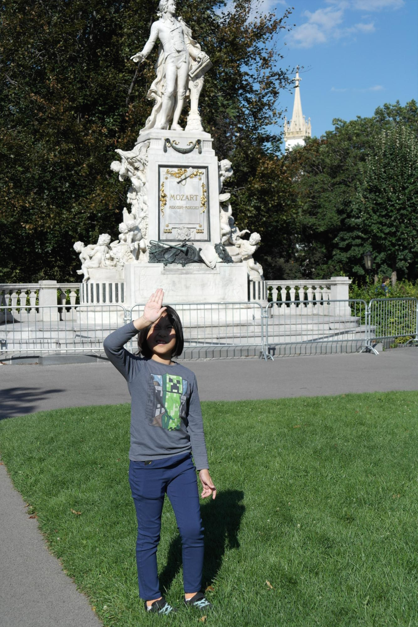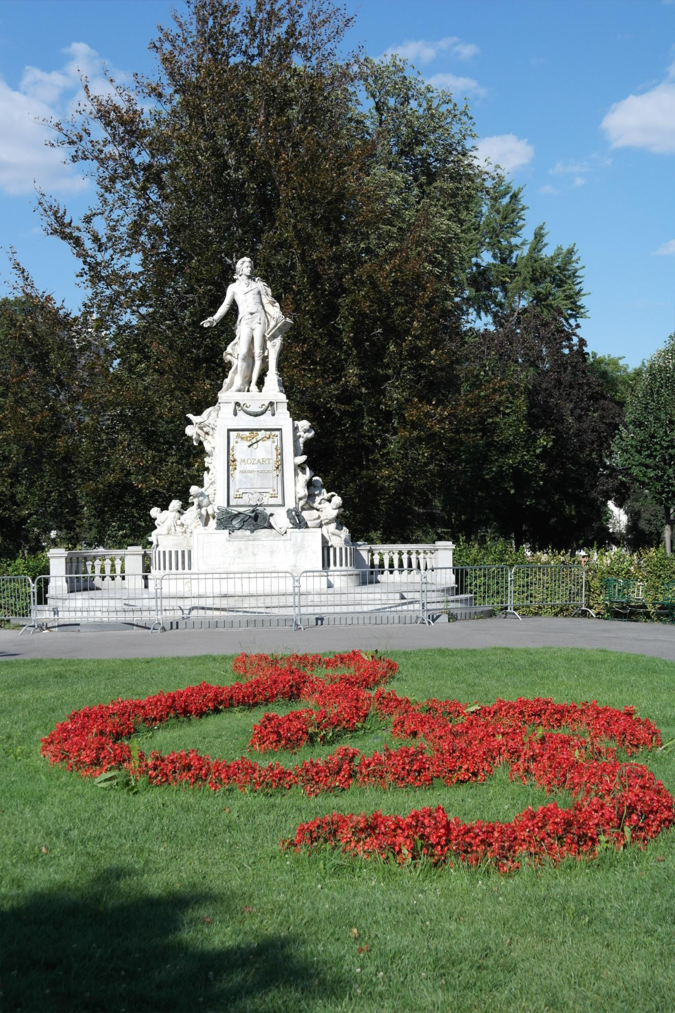 부르가르텐의 모짜르트 석상이다. 모짜르트를 기념하는 곳이라 잔디 위 꽃도 높은음자리표로 꾸며져 있다.