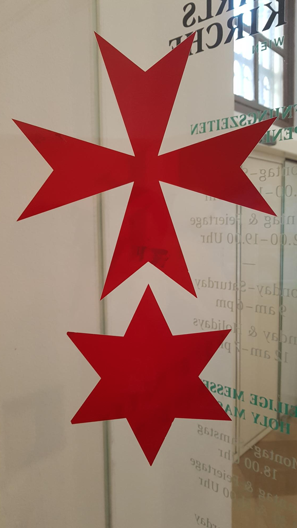 카를 교회에서는 십자가 밑에 다윗의 별 무늬가 함께 있는 문양을 사용한다. 나중에 알았지만 체코 대부분의 교회도 마찬가지였다.