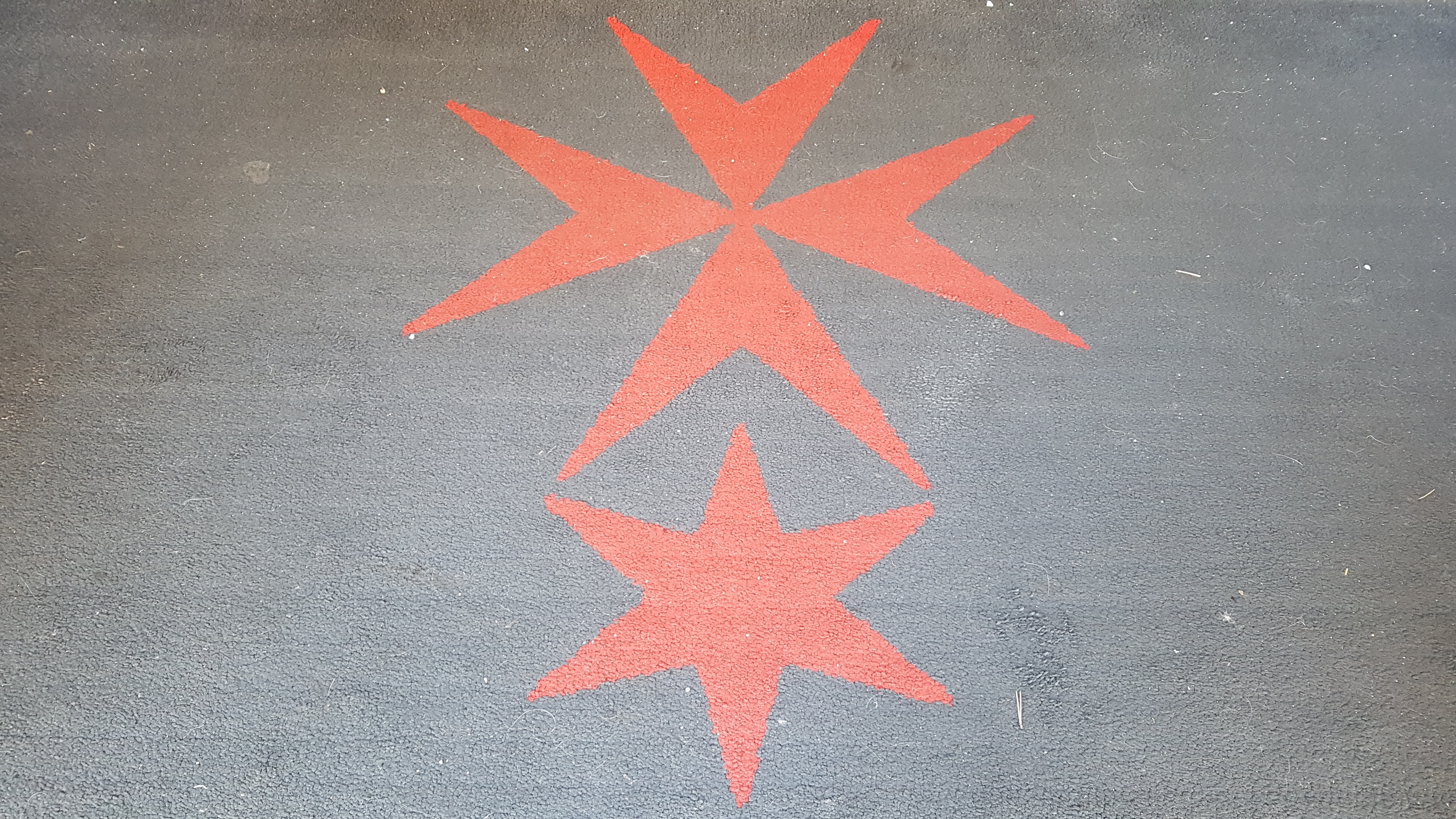 이 교회 십자가는 일반 교회의 것과 다르다. 다윗의 별과 함께 한쌍으로 구성되는데 계단에서도 문에서도 이 독특한 문양을 계속 볼 수 있다. 교회가 십자기사단과 관련 있는지 교회 유물실에 현 십자기사단장의 사진과 옛 단장의 초상화가 함께 걸려 있다. 지금도 십자기사단이 있다는 사실을 오늘에야 알았다. 압권은 교회 중심 제단의 상단부 장식이다. 십자가 위에 빛나는 삼각형이 교묘하게 배치되어 있다.(아래 사진 참조) 1달러 지폐에서 보이는 삼각형의 눈 같은 느낌이다. 음모론과 관련 없다 하더라도 묘한 느낌을 주는 곳임에는 틀림 없다.