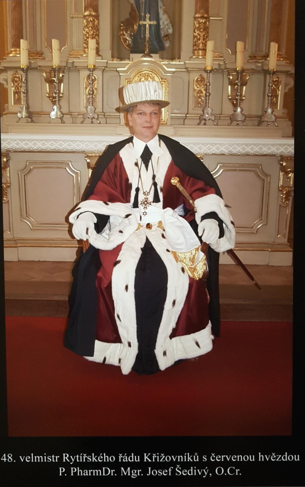 앞에서 언급한 것처럼 이 교회는 십자기사단과 깊은 관계가 있다. 아래는 현 48대 십자기사단 단장이라고 한다. 체코 사람이라고 한다.
