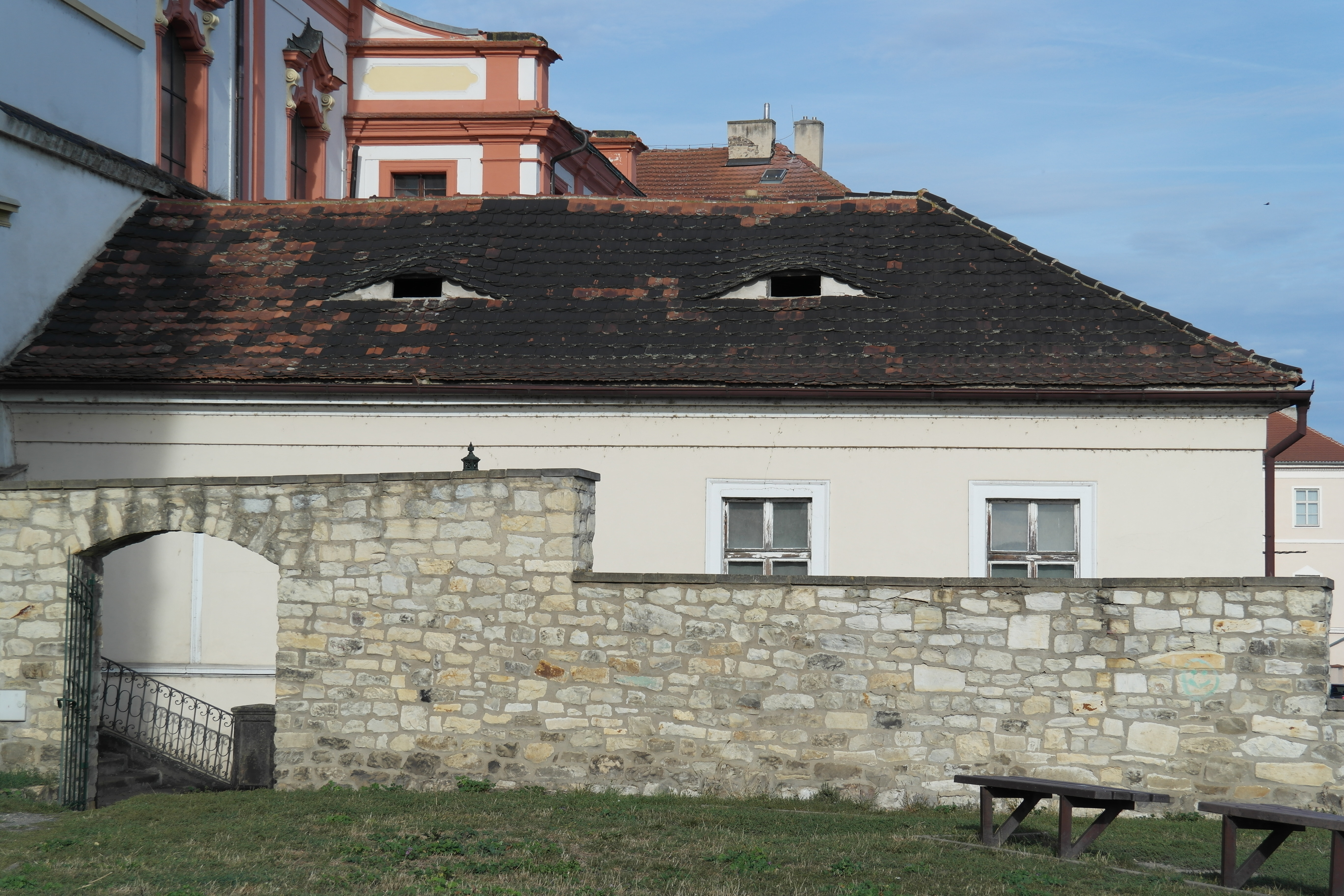 성 스티븐 성당(Saint Stephen Cathedral) 앞 건물. 리토메리체 관련 사진에 자주 나오는 건물 중 하나다. 성당 건물의 일부로 보인다.