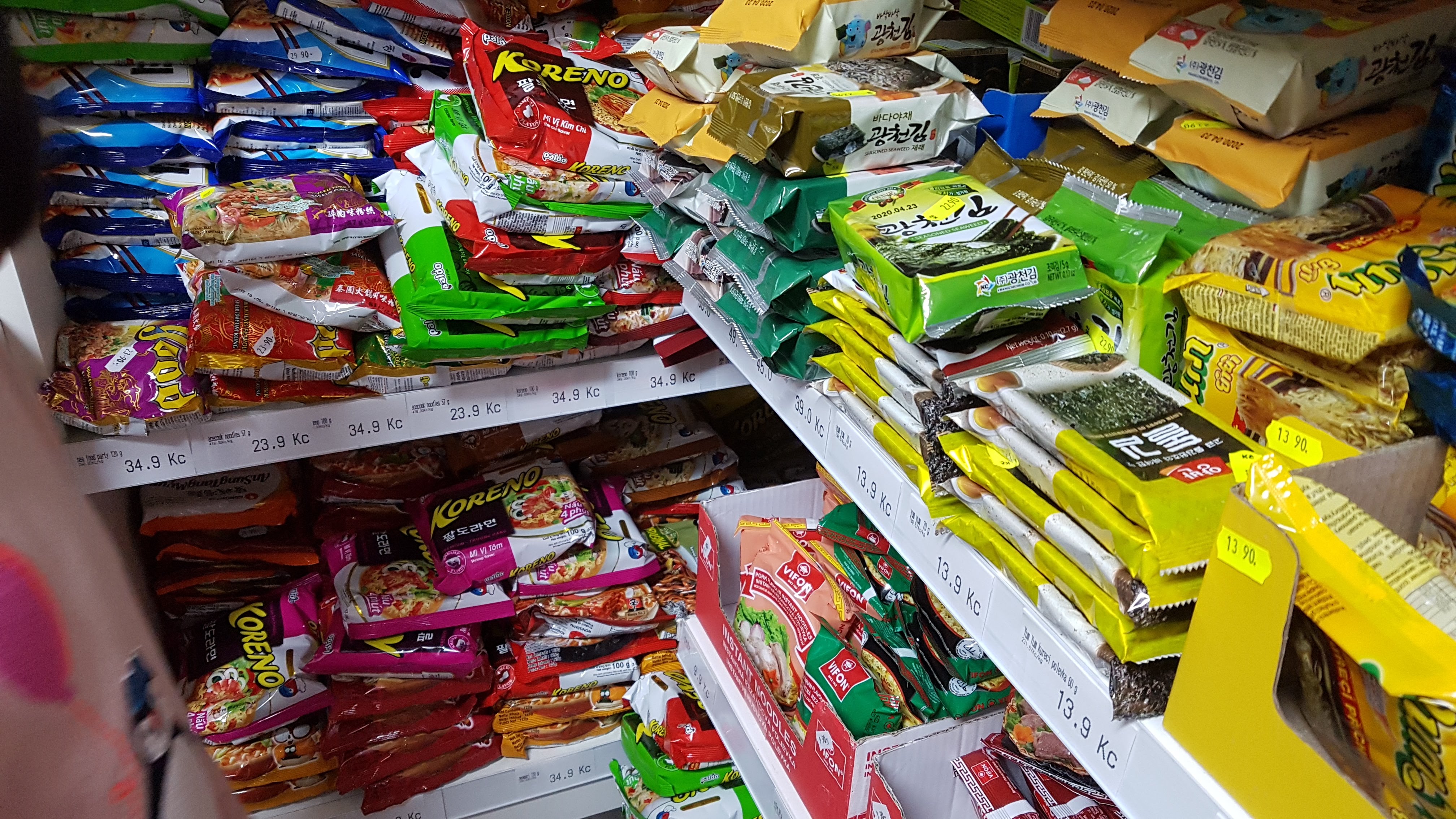 체스키 크룸로프 작은 가게에서 만난 각종 한국 과자와 라면들. 펜션 갈코(Pension Galko) 옆에는 작은 슈퍼가 있다. 그곳에 갔더니 이렇게 한국 과자, 식료품, 라면이 가득하다. 한국 관광객들이 얼마나 많이 오길래 이럴까 싶다가도 생각해 보니 전망대에서 만났던 관광객의 40% 가량은 항상 한국인이었던 것 같다. 잘 안 알려진 사실인데 체코항공이 유럽 외 대륙에 취항하는 유일한 공항이 인천공항이다. 그리고 프라하 공항의 모든 안내판은 체코어, 영어, 러시아어, 그리고 한국어로 표기되어 있다. 심지어 한국인은 자동 입국 심사를 받을 수 있기도 하다.
