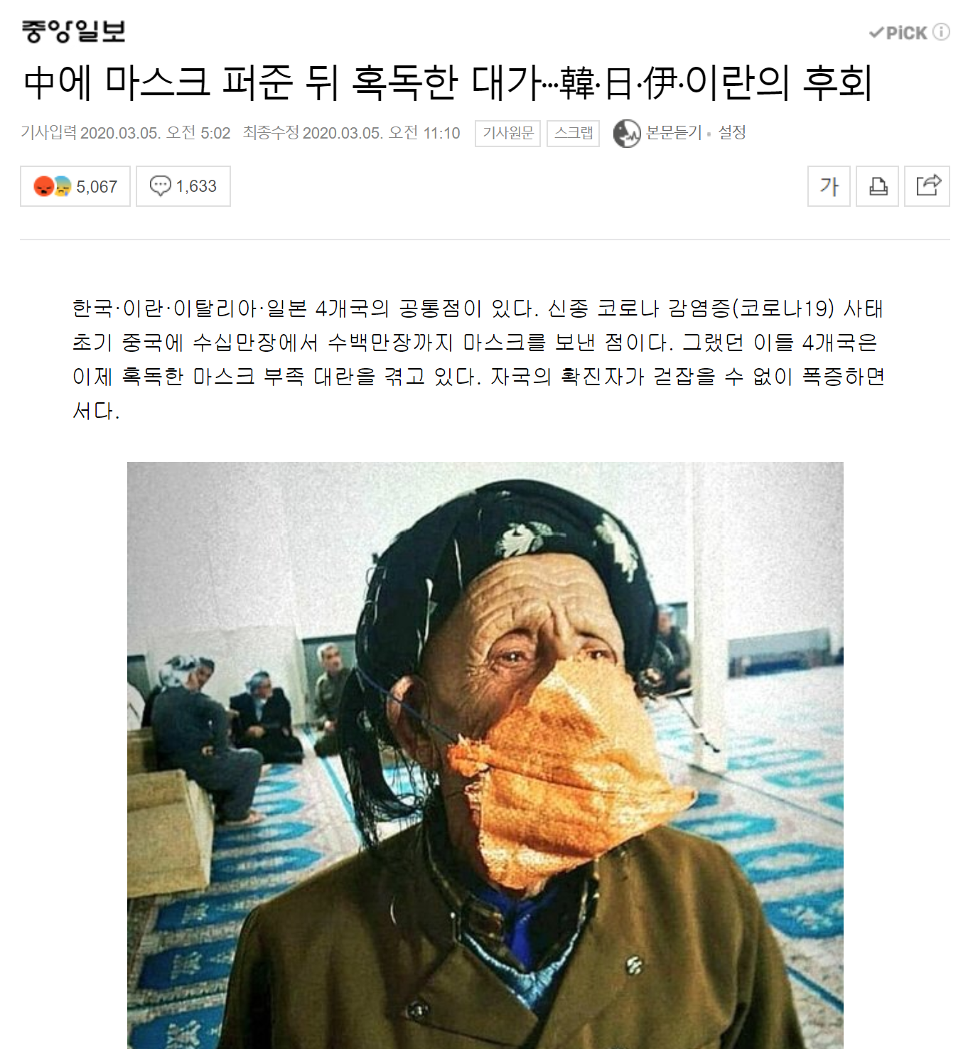 2. 한국과 일본, 이탈리아, 이란의 공통점은 모두 남의 아픔을 외면하지 않은 따뜻한 사람들이라는 점이다. 물론 기레기는 사람이 아니라 그런 연민의 정이 무엇인지도 모를 거다.