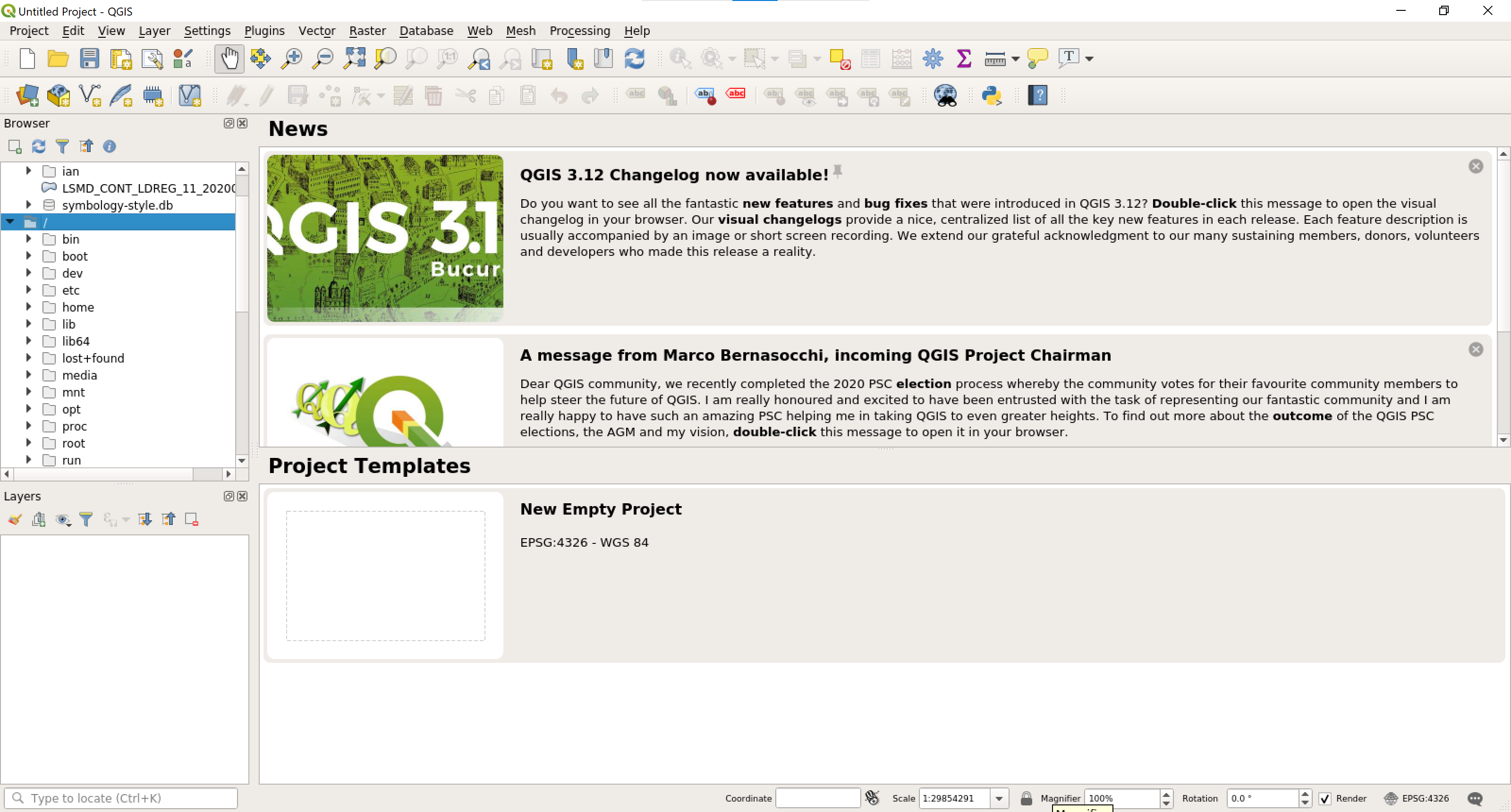 - QGIS가 아래처럼 매우 빠르게 실행된다.