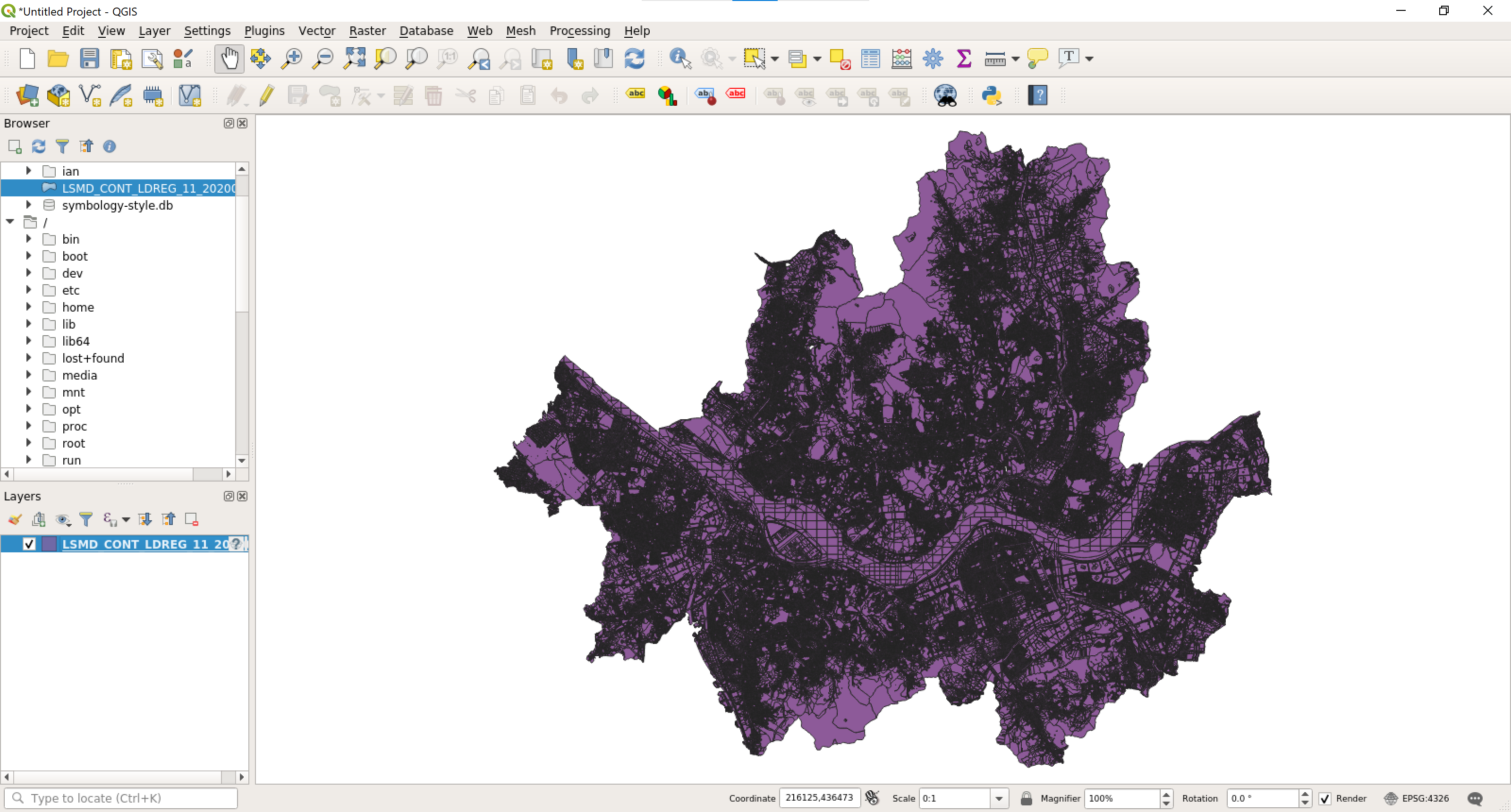 - 데이터가 WSL2의 파일 시스템에 있을 경우 QGIS의 처리 속도는 윈도우 QGIS를 압도한다. MS에서도 WSL2의 프로그램을 이용해 데이터를 처리할 경우 윈도우가 아닌 WSL2의 파일 시스템에 직접 저장해 사용할 것을 권장한다.