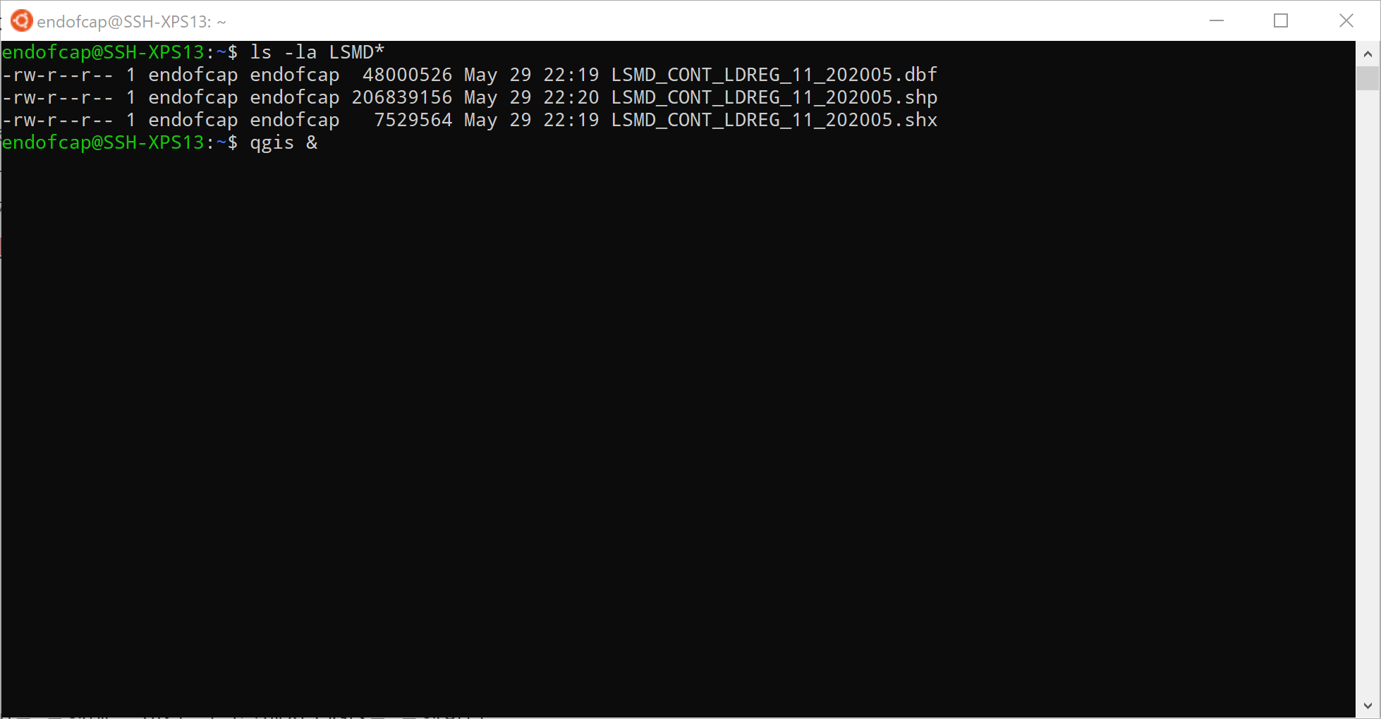 - WSL이나 혹은 Ubuntu를 실행해 들어간 명령창에서 QGIS를 실행한다.