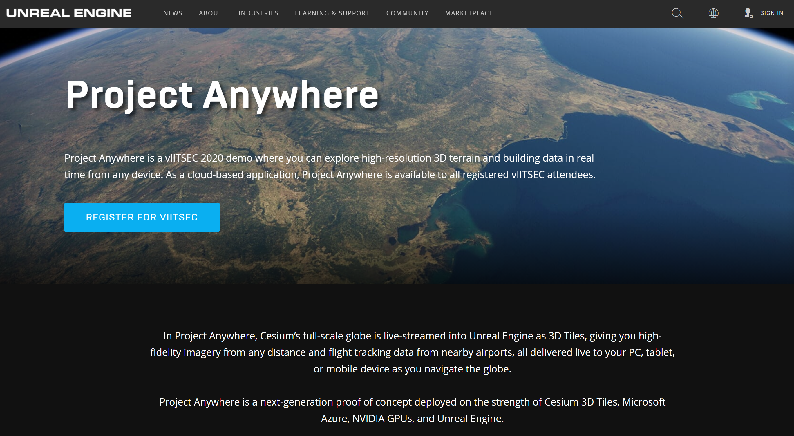 Cesium ion의 전 세계 3D Tiles를 Microsoft Azure로 서비스하고 NVIDIA GPU 가속을 이용해 Unreal Engine으로 가시화. 여기서 Cesium은 자신의 역할을 3D Tiles를 통한 콘텐츠 제공자로 한정. 최근 Cesium ion 프로젝트를 통해 확보한 공간정보를 다양한 곳에서 활용하려는 전략.