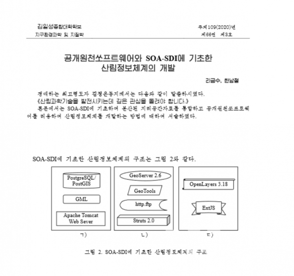 Quite interesting to see a paper from North Korea that they used numerous #FOSS4G including #GeoServer, #GeoTools, #OpenLayer, #PostGIS for developing their forest information system. Hey, NK friends! Please come to the next FOSS4G BA 2021 and give a talk!
