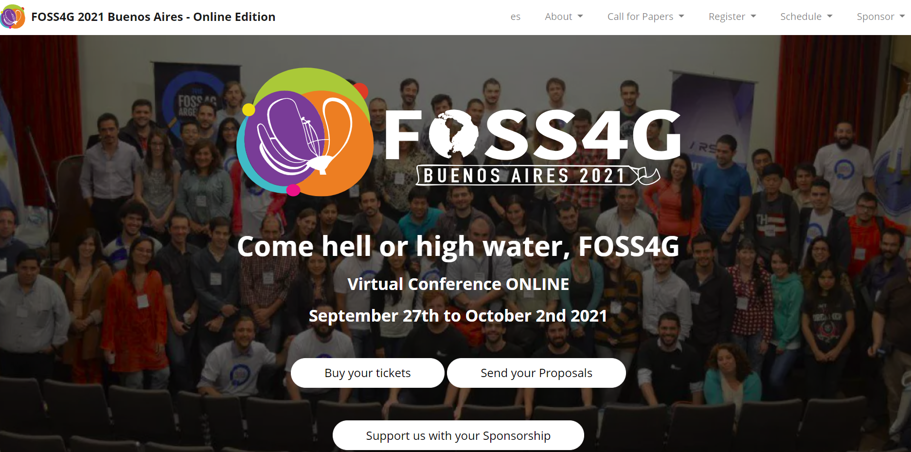 FOSS4G 2021 Buenos Aires will go online due to COVID-9 pandemic. This year's FOSS4G will take place from 27th Sep to 2nd Oct. Call for talks and workshops are still open till to 30 March. If you have any great things related to open source geospatial and want to share with community, please submit your proposal through to the link below.