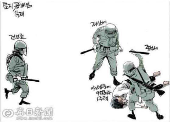 Catholic owned news paper called Maeil Newspaper(http://news.imaeil.com) published this kind of provoking cartoon yesterday that deeply hurt and harassed not only the victims of Gwangju Democratization Uprising but all the South Korean citizens. It's so appalling and unacceptable. During the Gwangju Democratization Uprising in 1980 in South Korea, more than 200 people were killed and 3,100 wounded by brutal military force just like the picture attached. How can Catholic owned news paper copy and use the exact image of that for the cartoon?
