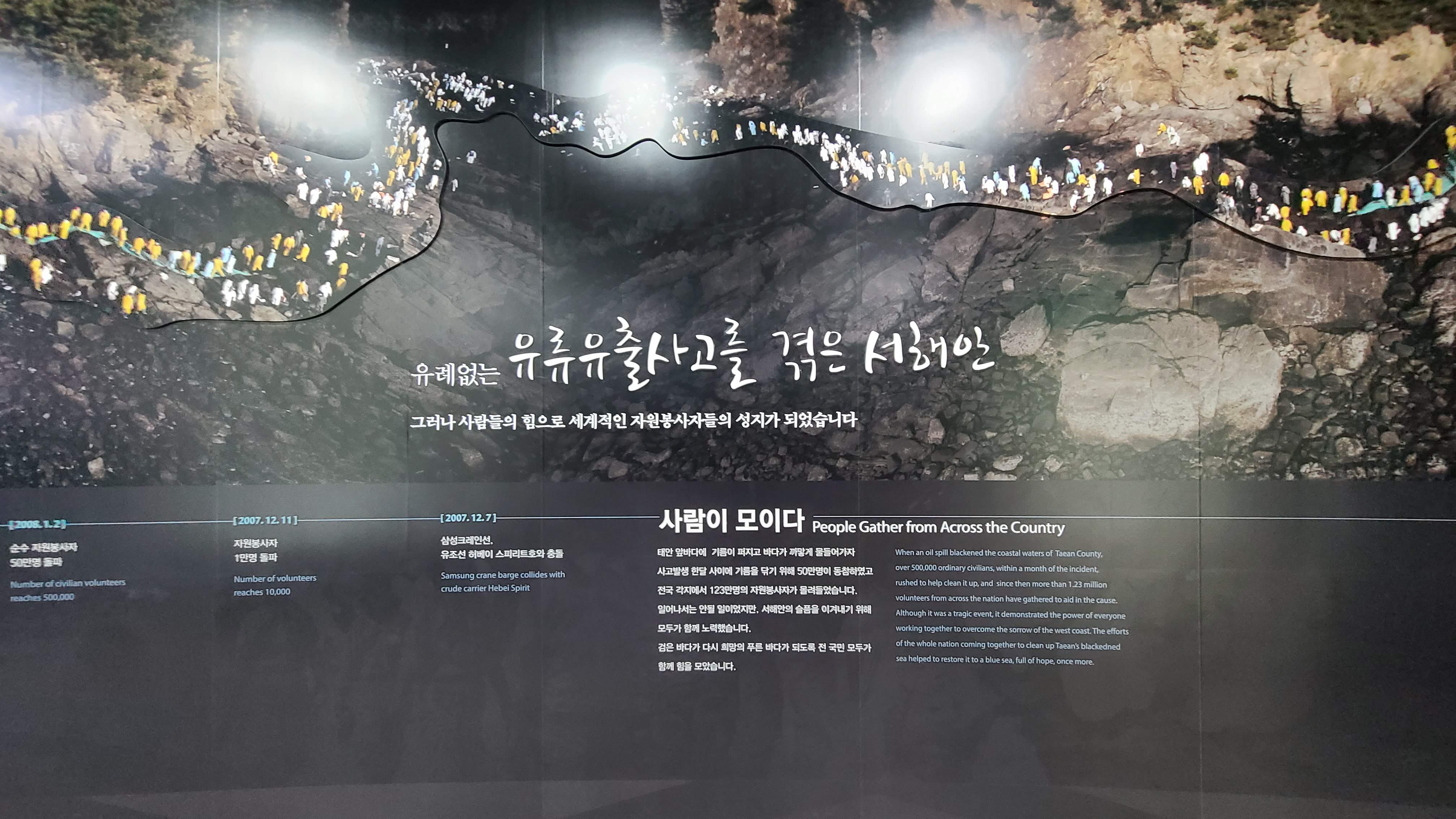 2007년 서해안 허베이스피리트호 원유 유출 사고. 123만명의 자발적 봉사와 각계의 노력 끝에 이제 태안 앞 바다는 그 깨끗함을 되찾았다. 이때 나도 아내와 함께 태안 해변에서 자원봉사했는데 기름냄새때문인지 오후 들어 어지럽고 구토 증상이 나타나 하루도 제대로 도움을 주지 못했던 기억이 난다. 고무장갑 하나 달랑 끼고 바위의 기름을 손으로 닦아내던 그 많은 무리를 보며 어떤 희망과 감격을 느꼈었다.
