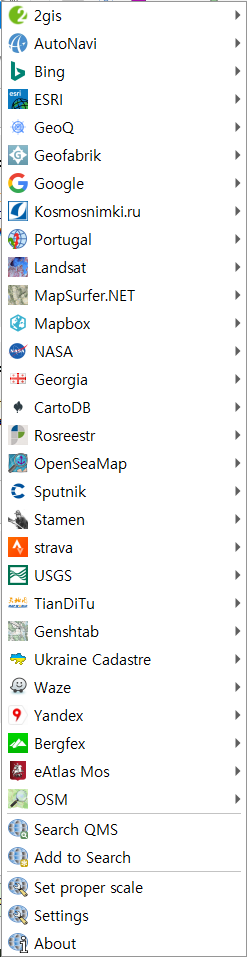 Google Map, Bing Map, ESRI, Mapbox, Carto, OSM, Landsat, USGS 등의 배경지도를 QGIS에서 활용할 수 있게 도와주는 플러그인입니다.