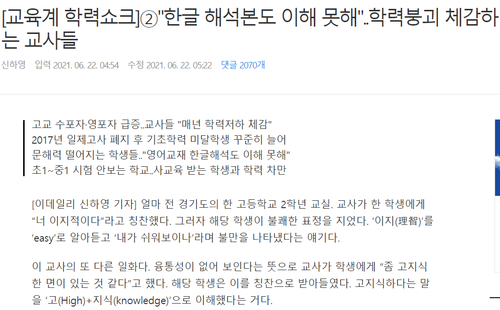 이 기사에 관해 애와 이야기를 나눠봤는데, 첫마디가 '기레기가 기레기했네'더군요. ㅋㅋ