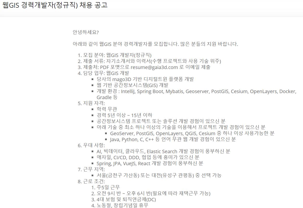 1. 모집 분야: 웹GIS 개발자(정규직)