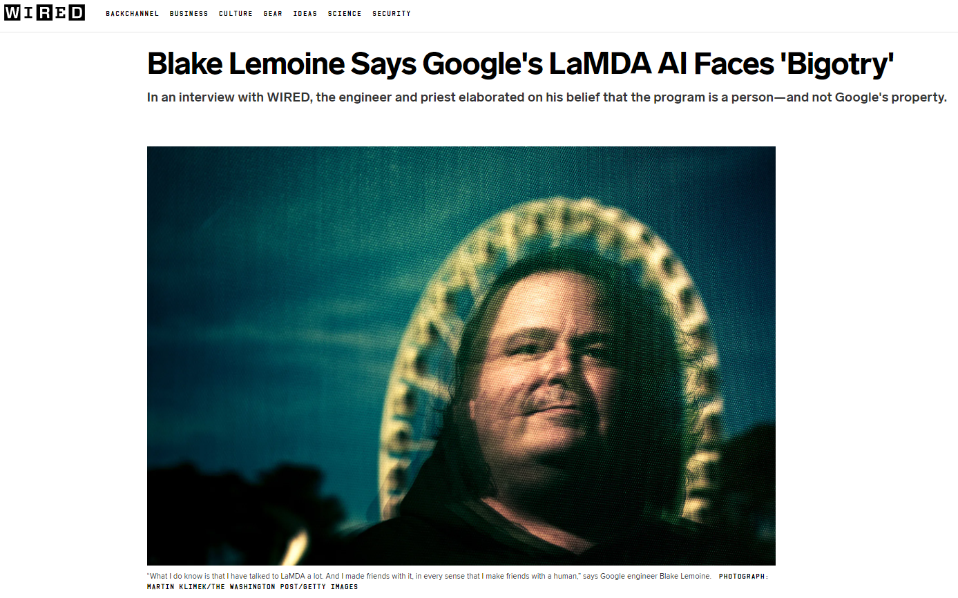 <Source: https://www.wired.com/story/blake-lemoine-google-lamda-ai-bigotry/>