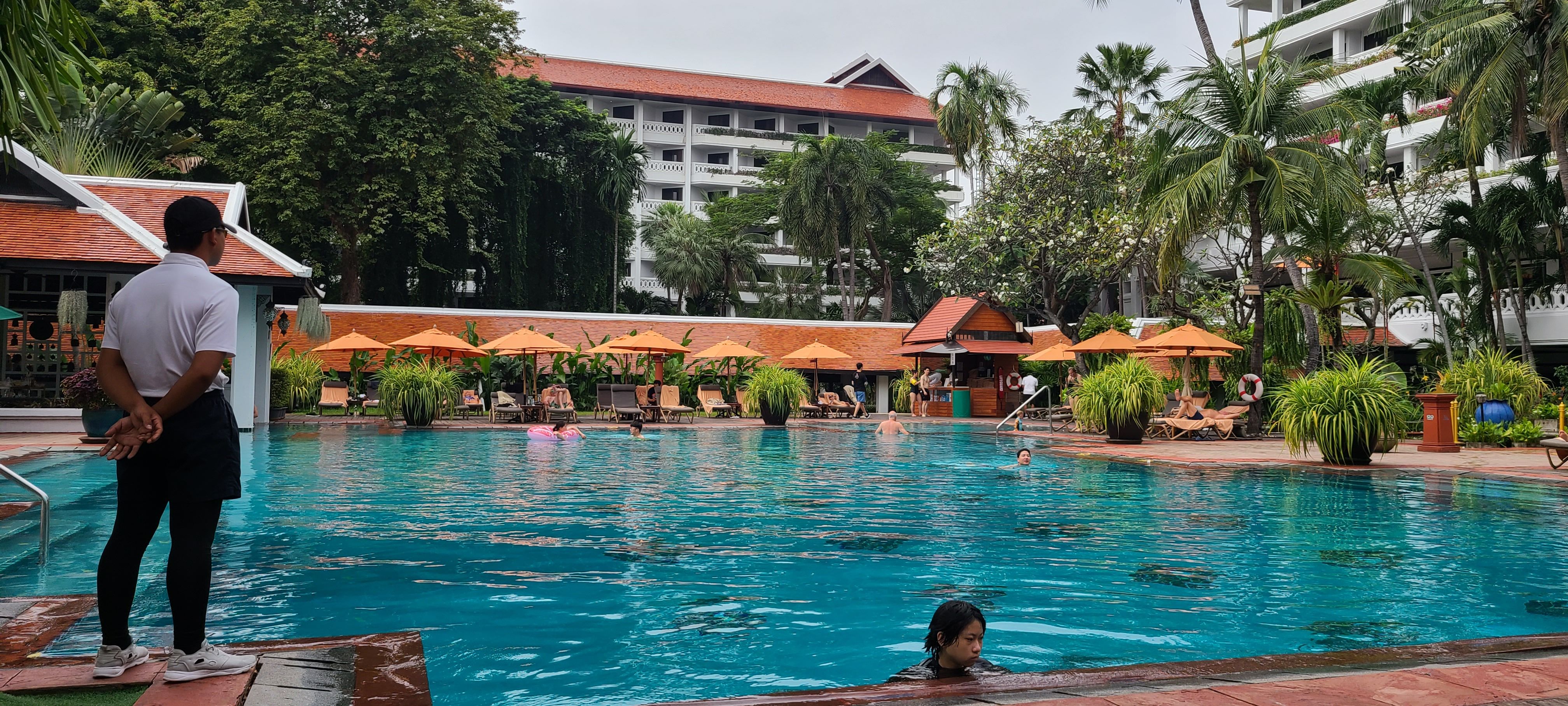넓고 깊은 아난타라 리버사이드 리조트의 수영장. 최고 3m 깊이의 수영장이다. 그래서인지 안전요원이 항상 지키고 있다.