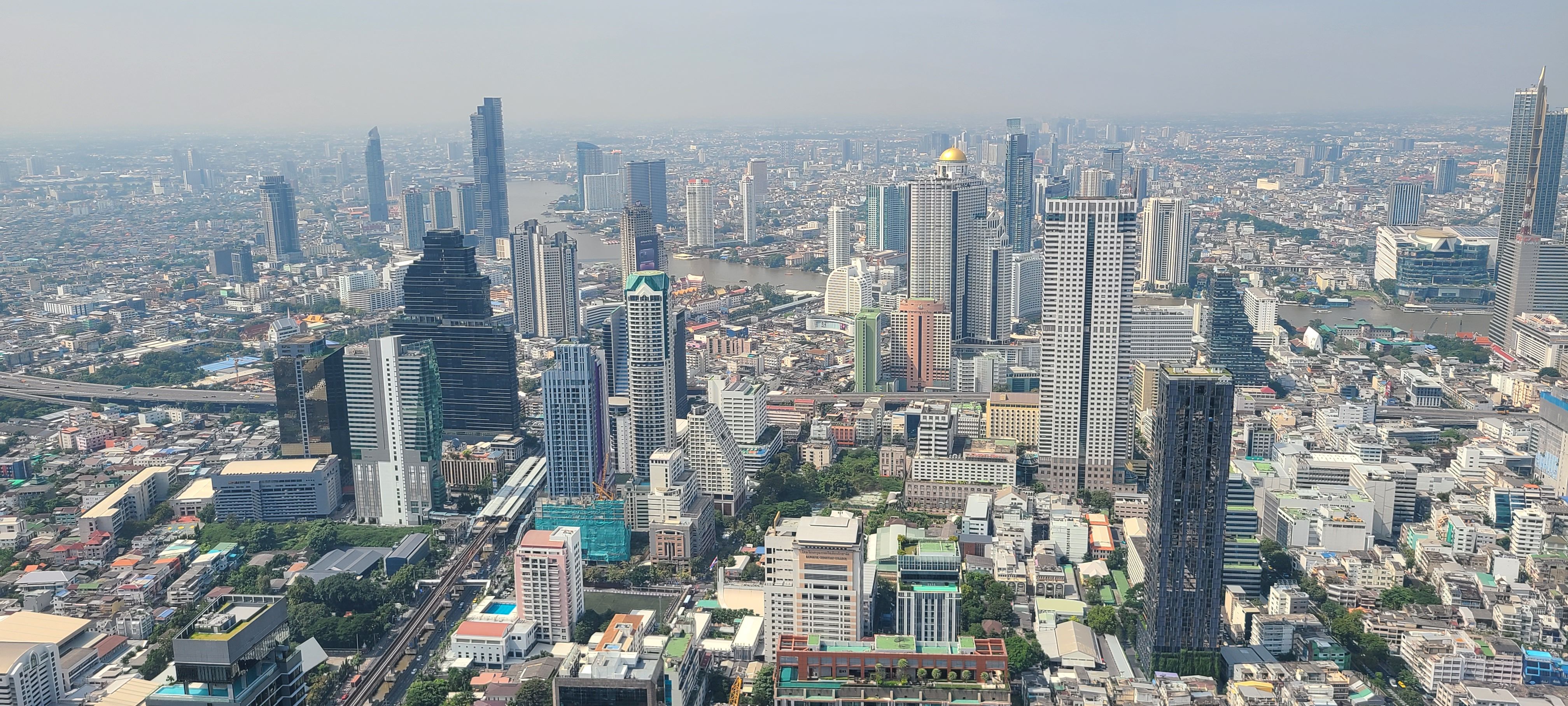 여기서부터는 마하나콘 스카이워크를 소개한다. 마인크래프트에 나올 법한 현대적 건물 맨 꼭대기 층에 전망대와 스카이워크가 있다. 건물은 대략 이렇게 생겼다.