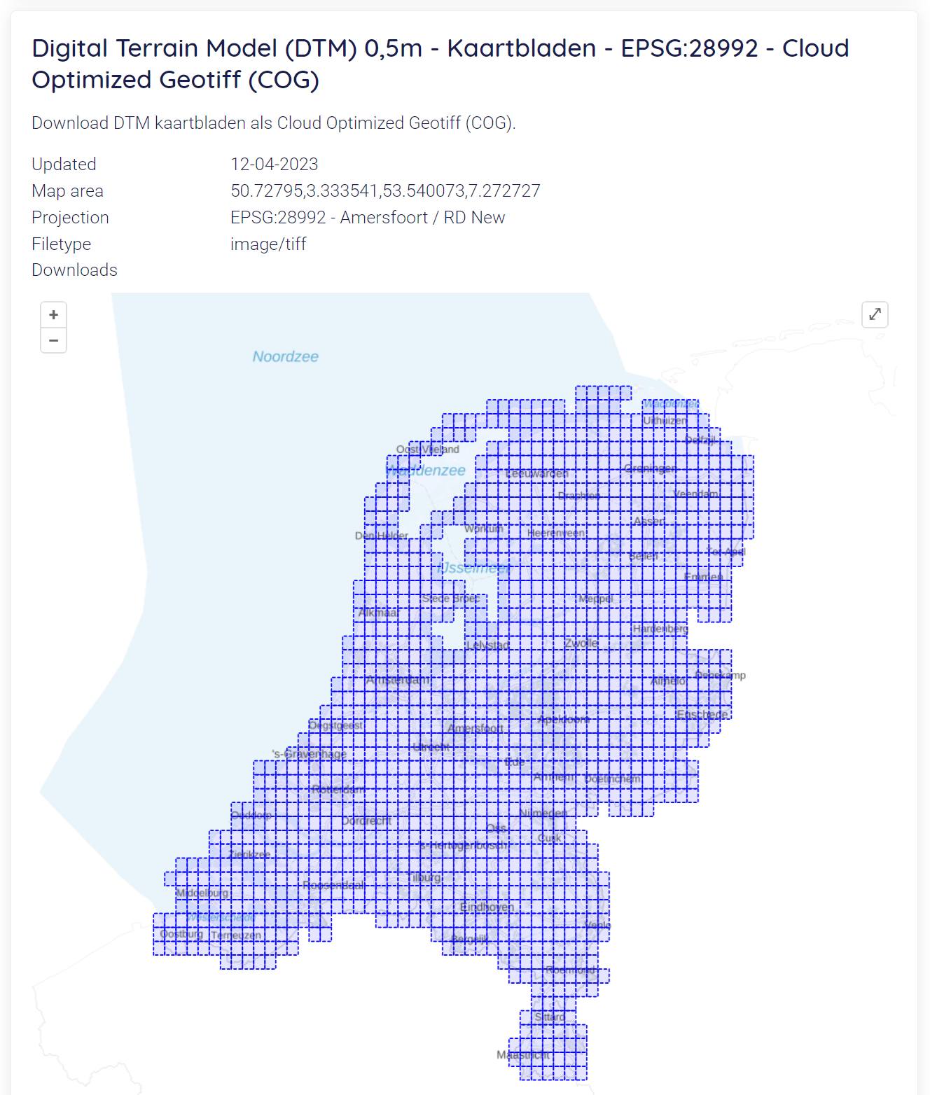 네델란드에서 전 국토에 대해여 50cm 해상도의 DSM, DTM을 제공합니다. COG(Cloud Optimized GeoTiff)로 제공하네요.