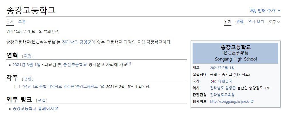 흥미로워 찾아보니 송강고등학교는 폐교된 '봉산초등학교 양지분교' 자리에 2021년 3월에 개교한 학교다.