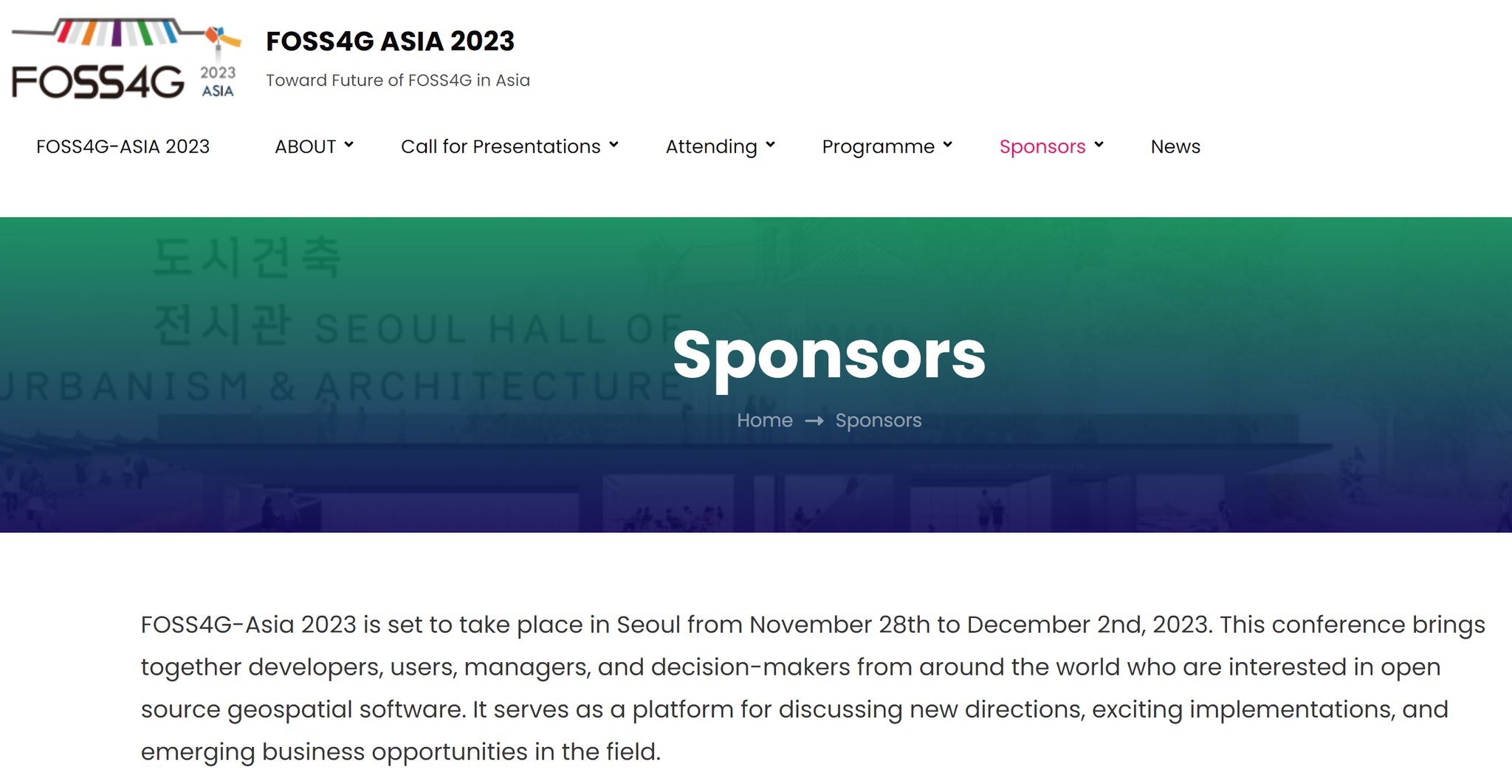 | Announcement of FOSS4G-Asia 2023 Seoul Travel Grant Program (0) | 2023.06.21 |