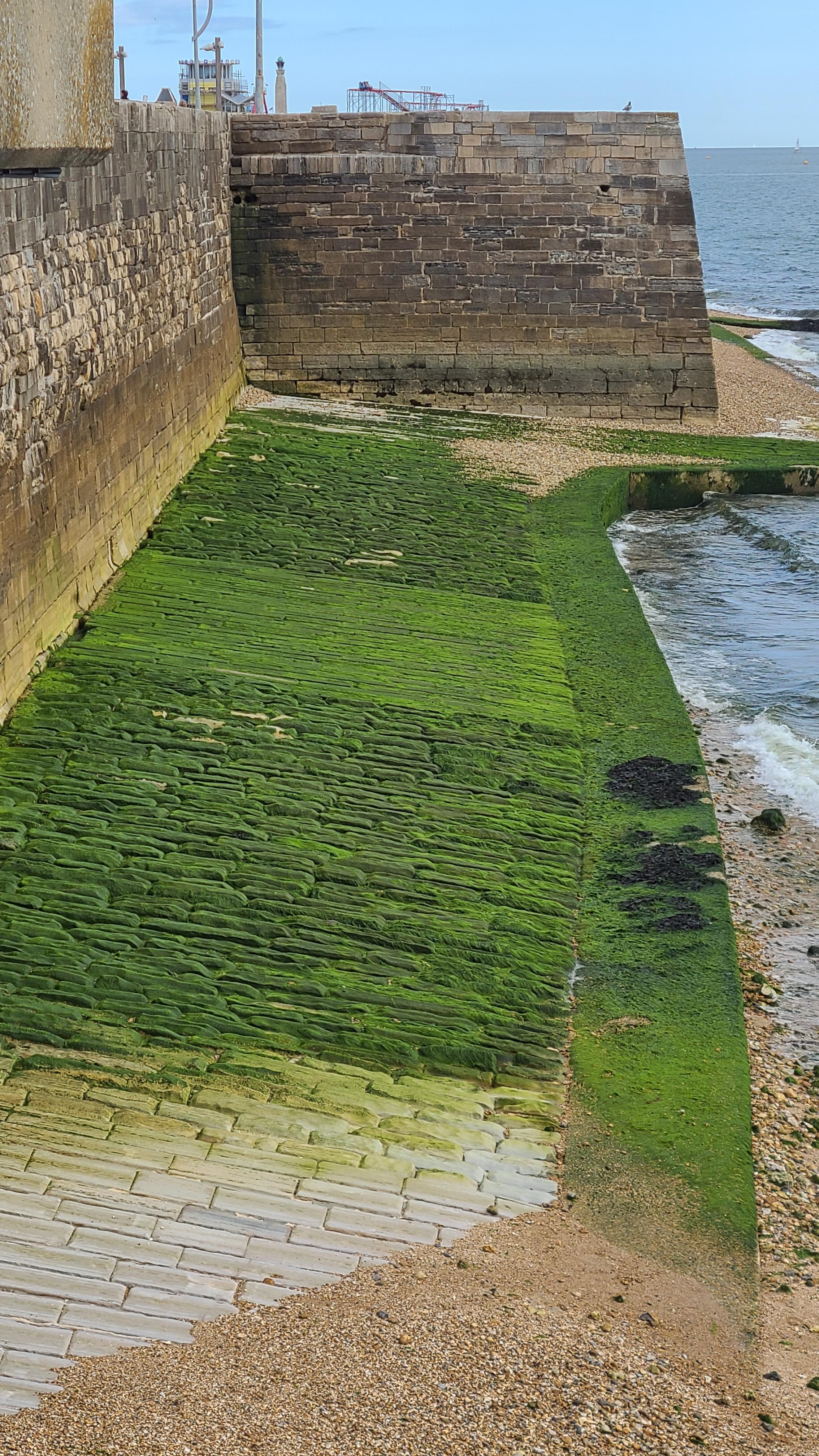 Gunwharf Quays에서 Historic Dockyard 입구 쪽으로 걷다 찍은 풍경. 여기도 조수간만의 차가 제법 심해서 썰물 때는 이렇게 바닷물이 빠진다.