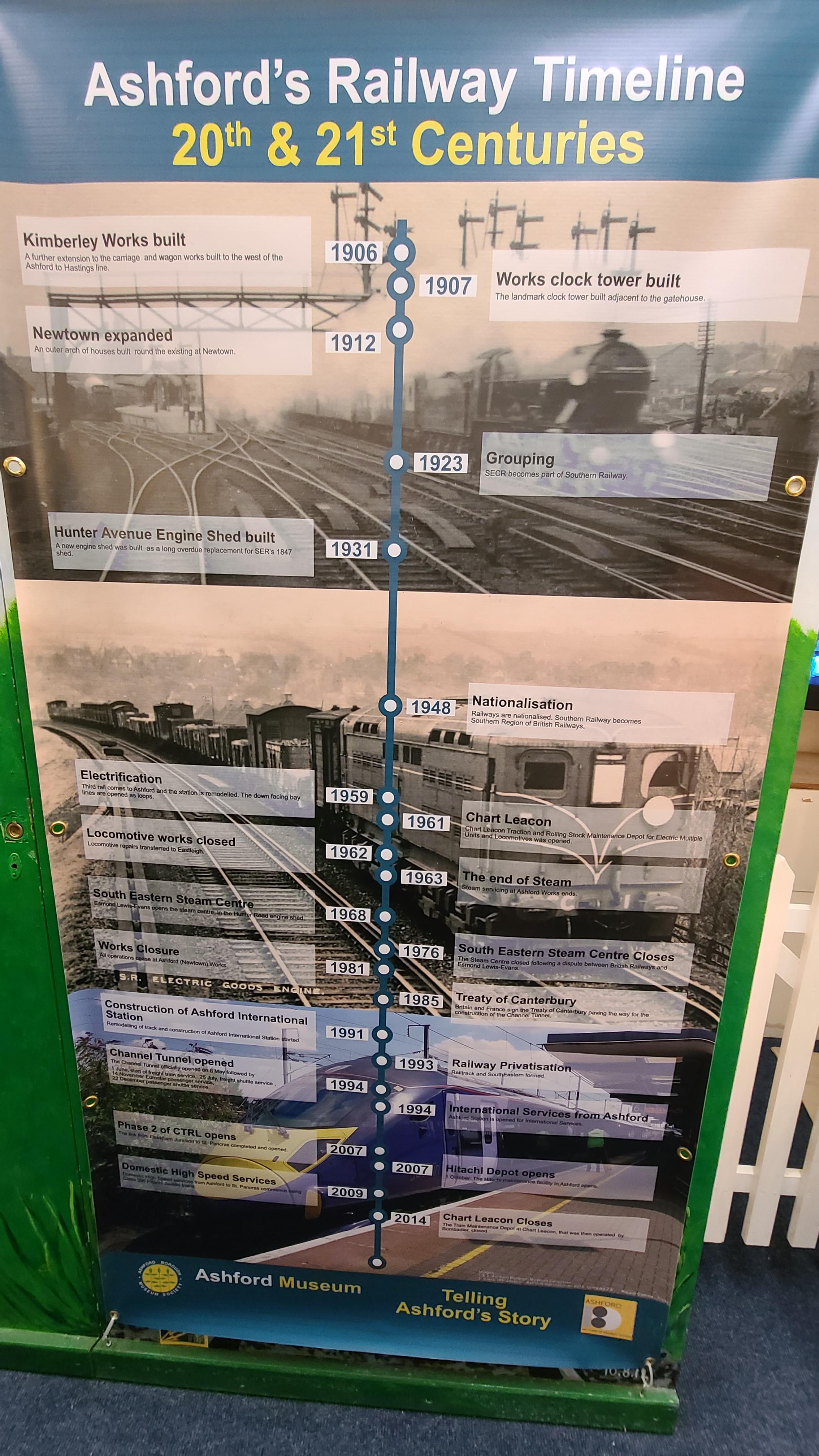 철도 중심지답게 애쉬포드의 철도가 어떻게 건설되었는지 연대기로 설명해 놓았다.