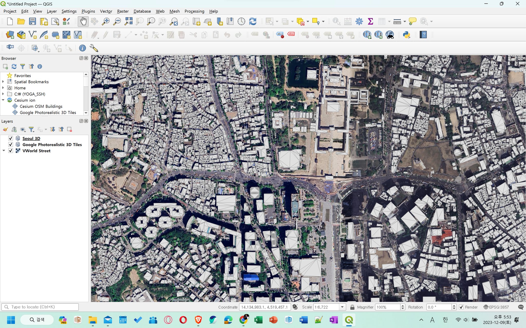 Google Photorealistic 3D Tiles x Seoul 3D Tiles x OpenStreetMap on QGIS