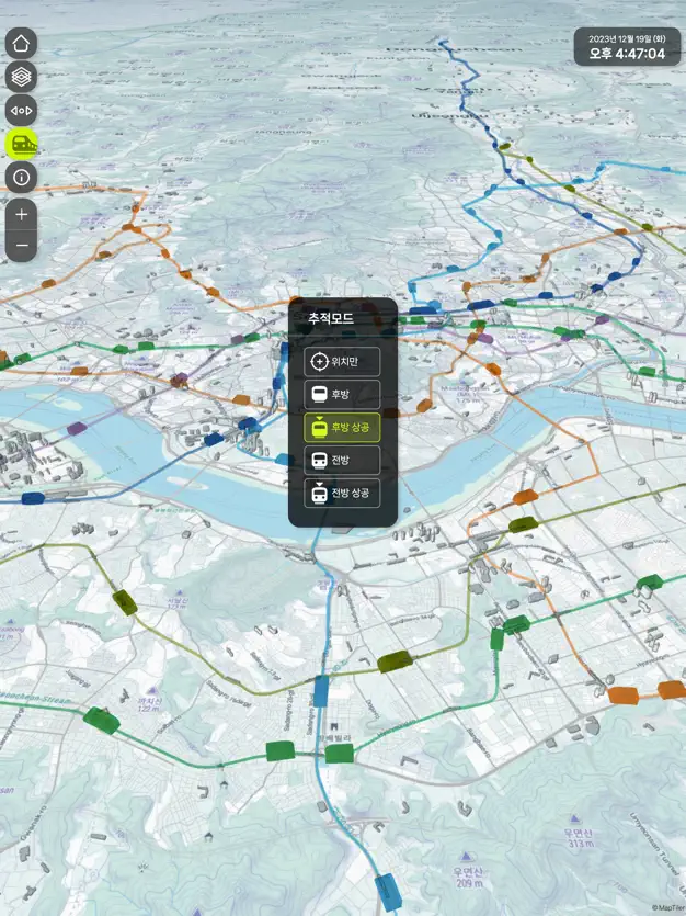 수도권 1호선부터 8호선까지 시간표 데이터를 기반으로 실시간 지하철 움직임을 3차원 지도위에서 제공합니다. 시간표 시간을 이용해서 움직이며, 실제 지하철 위치와 차이가 날 수 있습니다. 지하철과 멍때리며 힐링용으로 어플을 이용하세요! 서울시 3차원 데이터는 국토지리정보원 건물높이DB를 OGC 3D Tiles로 변환해 활용했고, 지하철 위치는 시간표를 활용해 계산한 것입니다.