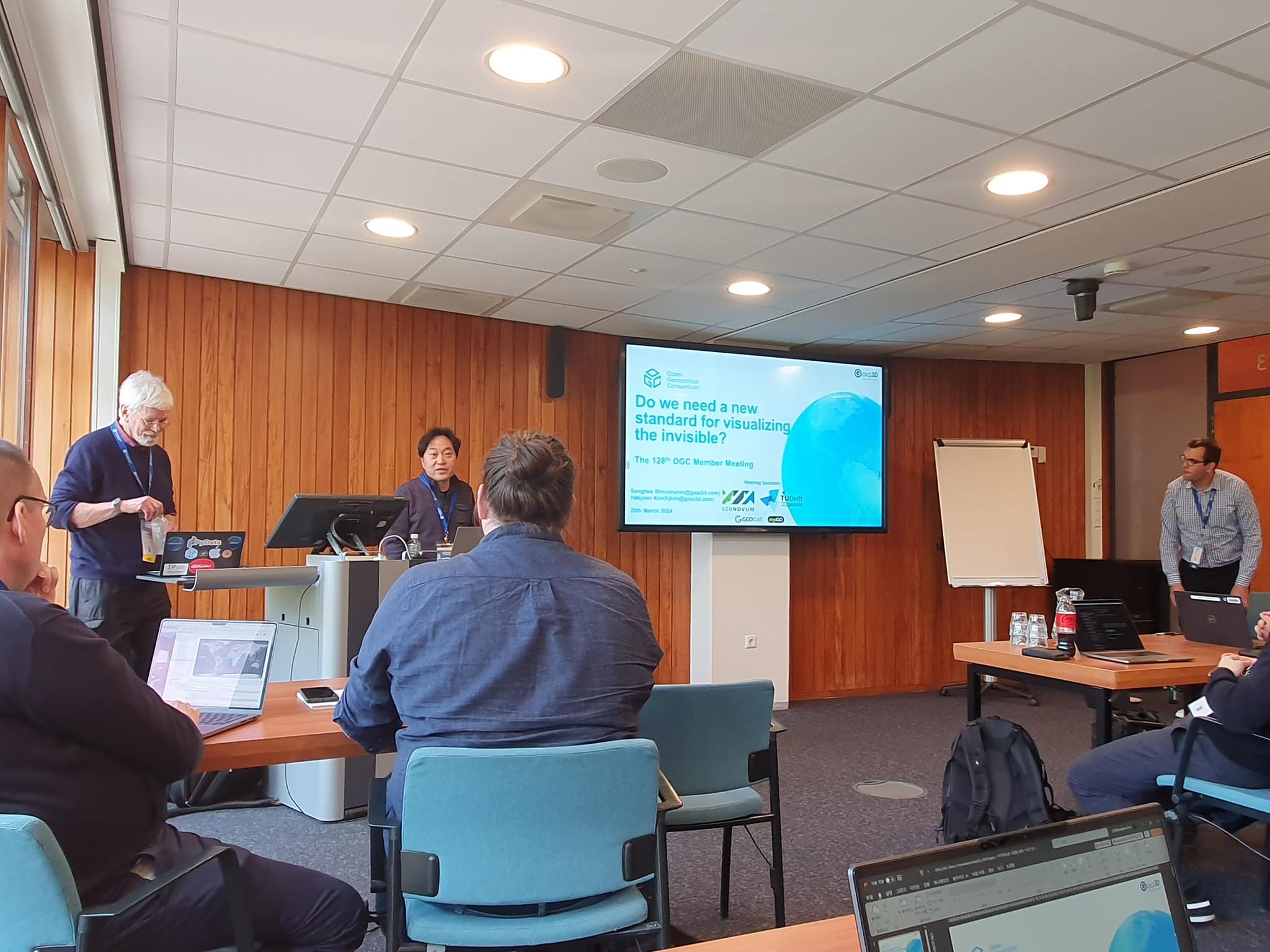 At the 128th OGC member meeting in Delft, Netherlands, my team from Gaia3D and I shared our experiences and the challenges we faced while visualizing large spatio-temporal datasets in digital twins. In conclusion, we discussed the necessity for a new standard, referred to as 'Voxel Tiles,' for visualizing spatio-temporal data.