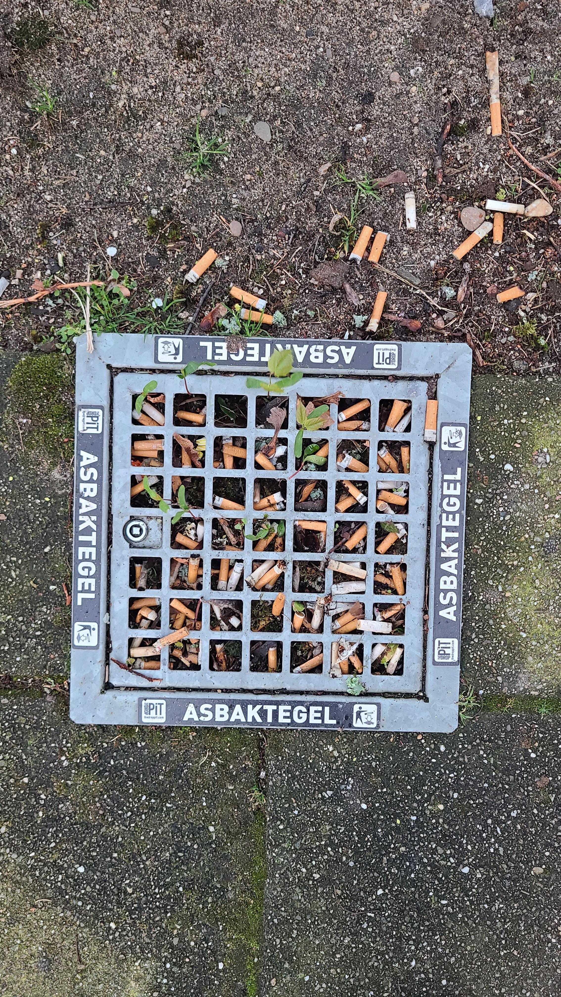 담배꽁초 버리는 곳. 아예 바닥에다가 저렇게 담배꽁초 버리게 만들어 놨다. 네델란드의 실용적 성격이 잘 드러난다. 법과 제도만으로 안 되는 건 그냥 인간의 본성을 인정하는 것. 암스테르담 특정 구역의 매매춘이나 마약 합법화도 같은 맥락.