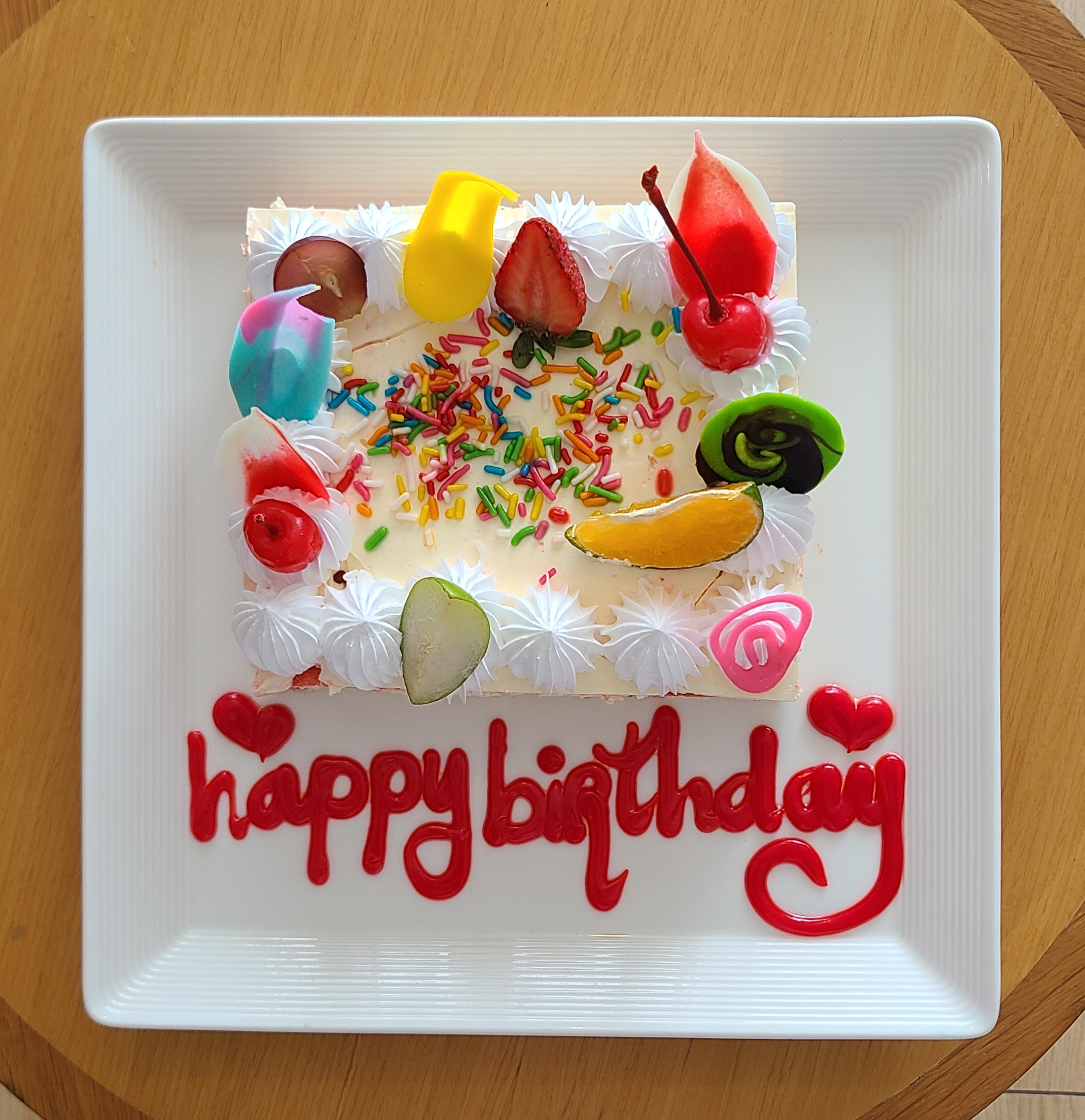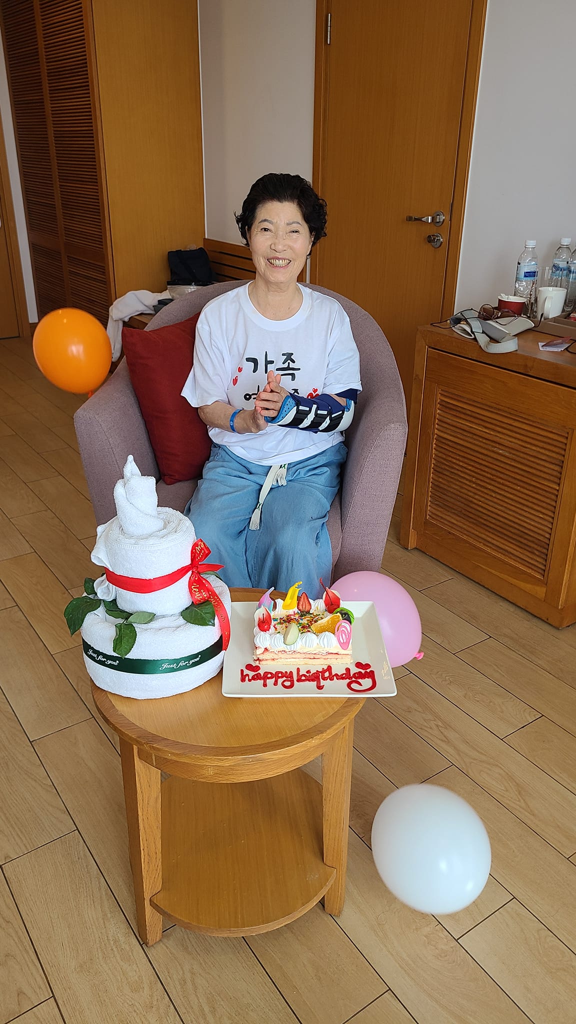 어머니 생신이리고 미리 리조트에 알렸더니 이런 케익 선물을 받았다.