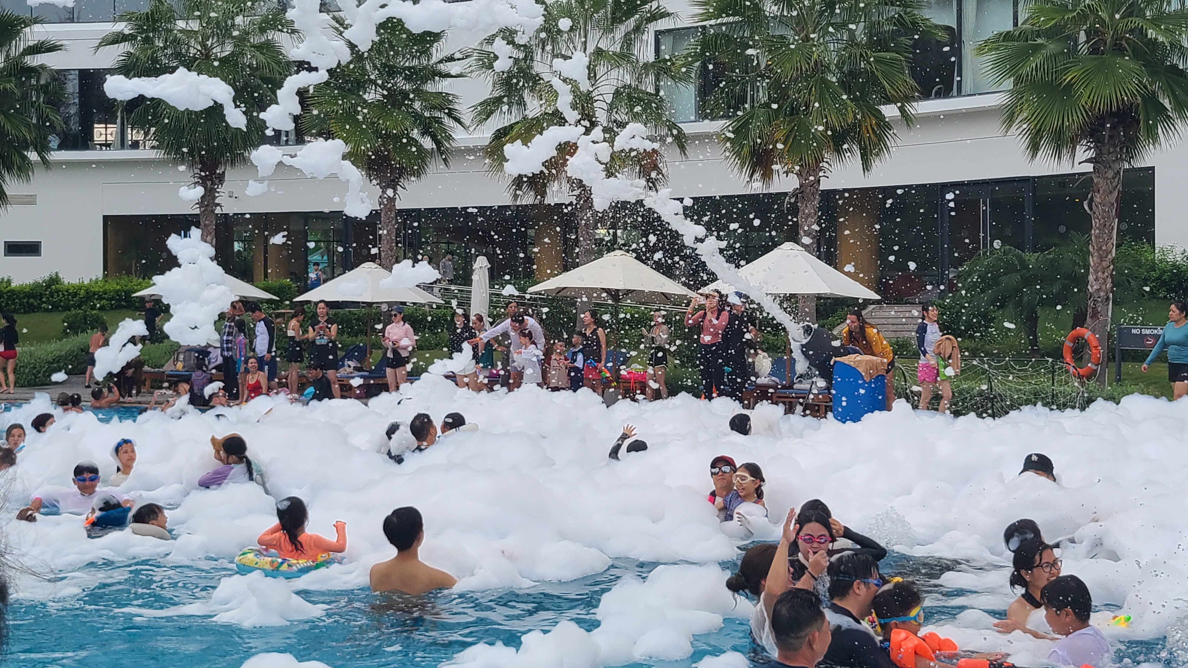 특정 요일 오후 4시부터 이렇게 본관 풀장에서 신나는 음악과 함께 폼파티를 연다.