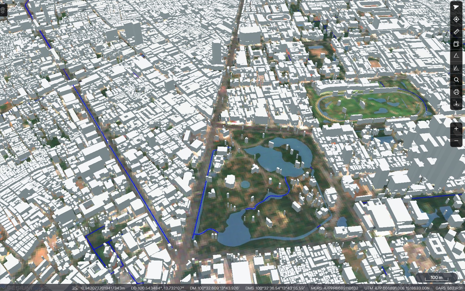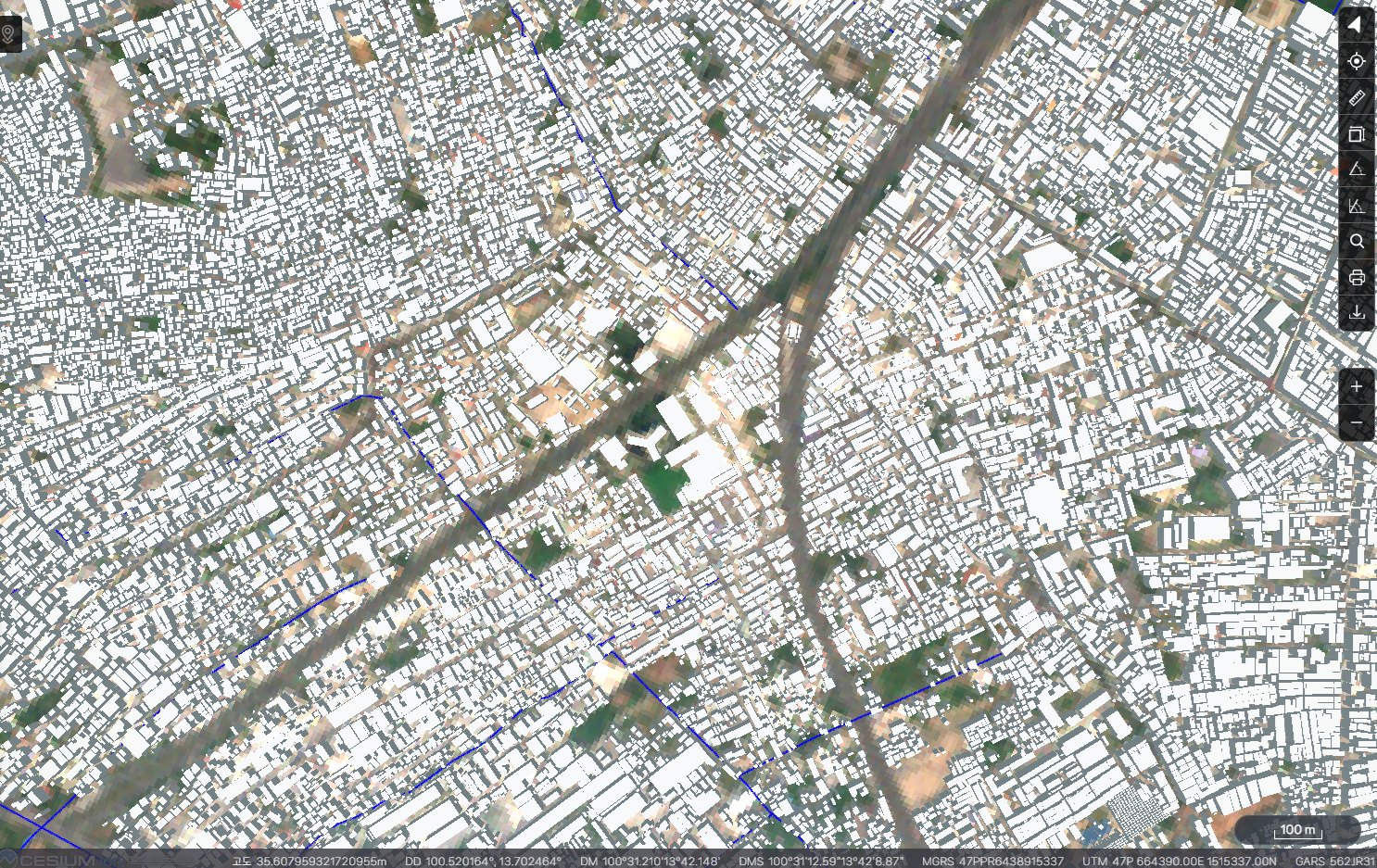 Overture Maps에서 2차원 방콕 건물 데이터 약 4백만건을 다운로드 받아 mago3DTiler를 이용해 OGC 3D Tiles로 변환해 봤습니다. 공개 데이터 X 개방형 표준 X 오픈소스의 결합이 빛을 발하는 대표적 사례입니다.