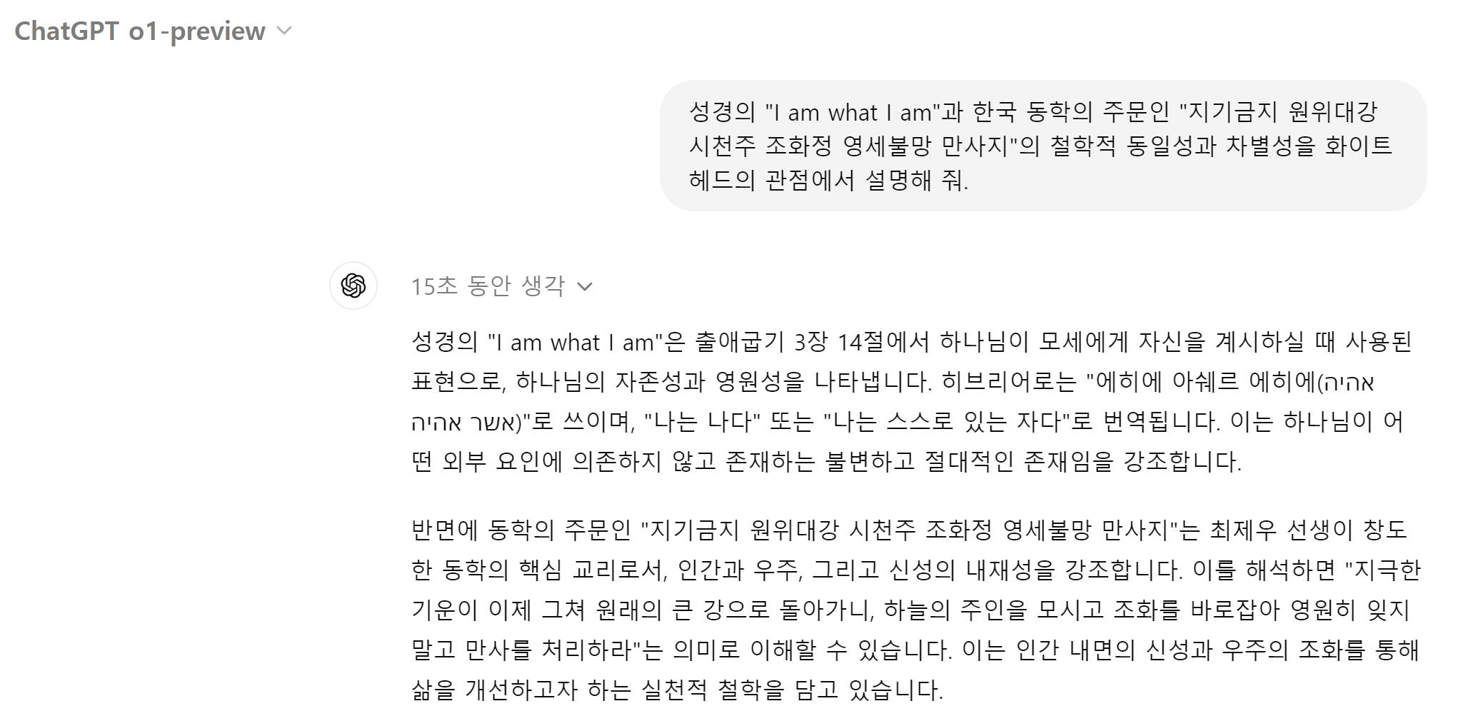 ChatGPT o1이 난리라기에 심심해서 질문을 하나 던져봤다. 15초만에 아래처럼 답을 했다. 날이 덥다. 맥주나 사러 가야겠다.