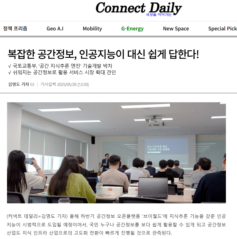 ≪커넥트 데일리≫ 복잡한 공간정보, 인공지능이 대신 쉽게 답한다!