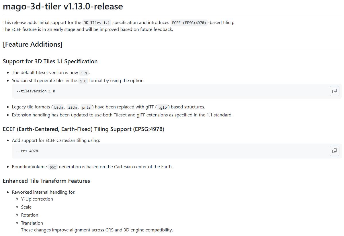 For details, please visit https://github.com/Gaia3D/mago-3d-tiler/releases/tag/v1.13.0-release or https://github.com/Gaia3D/mago-3d-tiler